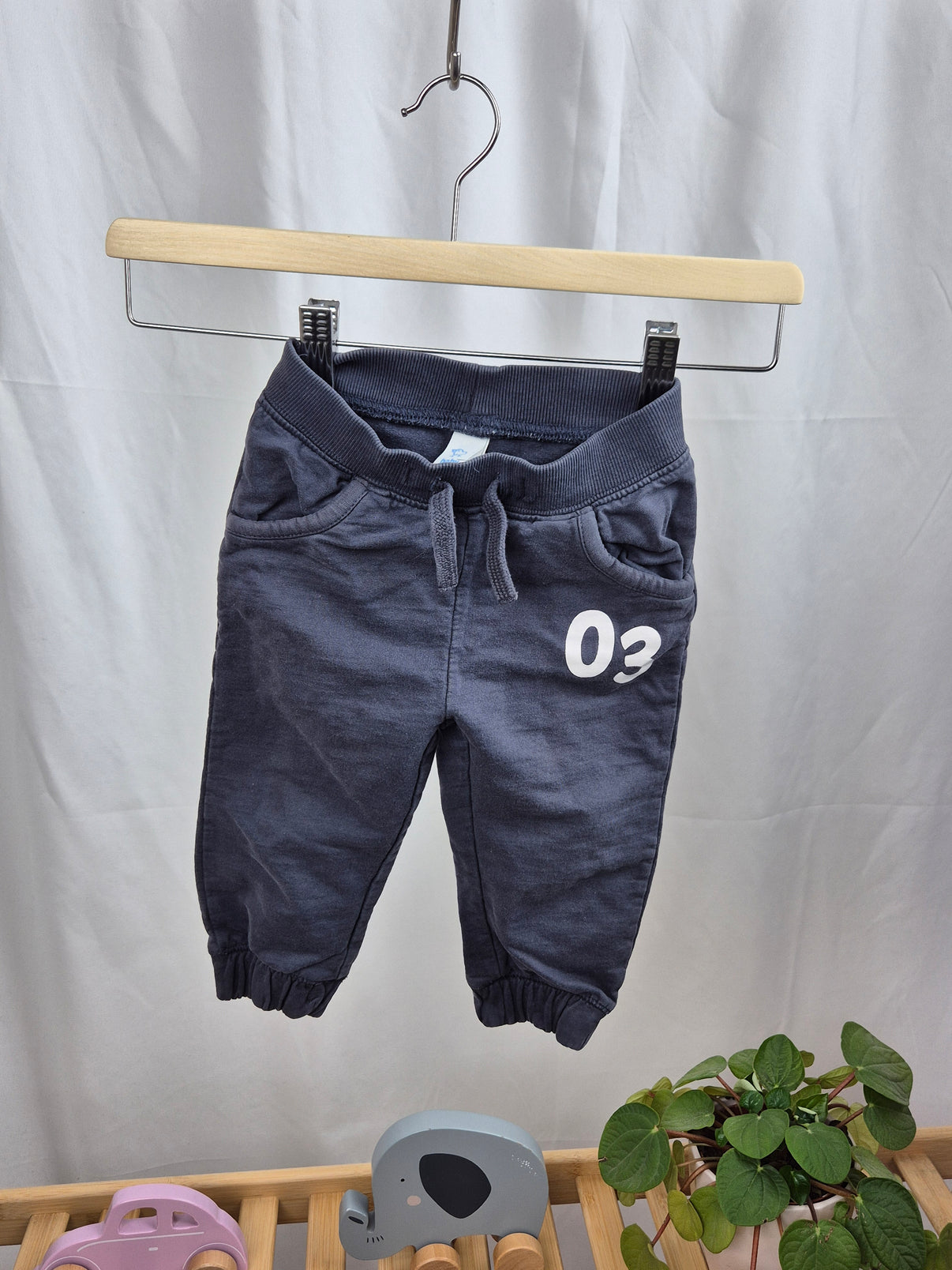 Pohodlné tepláky z C&A v tmavě šedé barvě jsou ideální volbou pro každodenní nošení. Díky měkkému bavlněnému materiálu, elastickému pasu se šňůrkou a zakončení nohavic do gumy zaručují maximální komfort při pohybu. Hravý detail s číslicí „03“ dodává sportovní nádech. Skvělé do školky, na hřiště i na doma. Vhodné pro kluky.