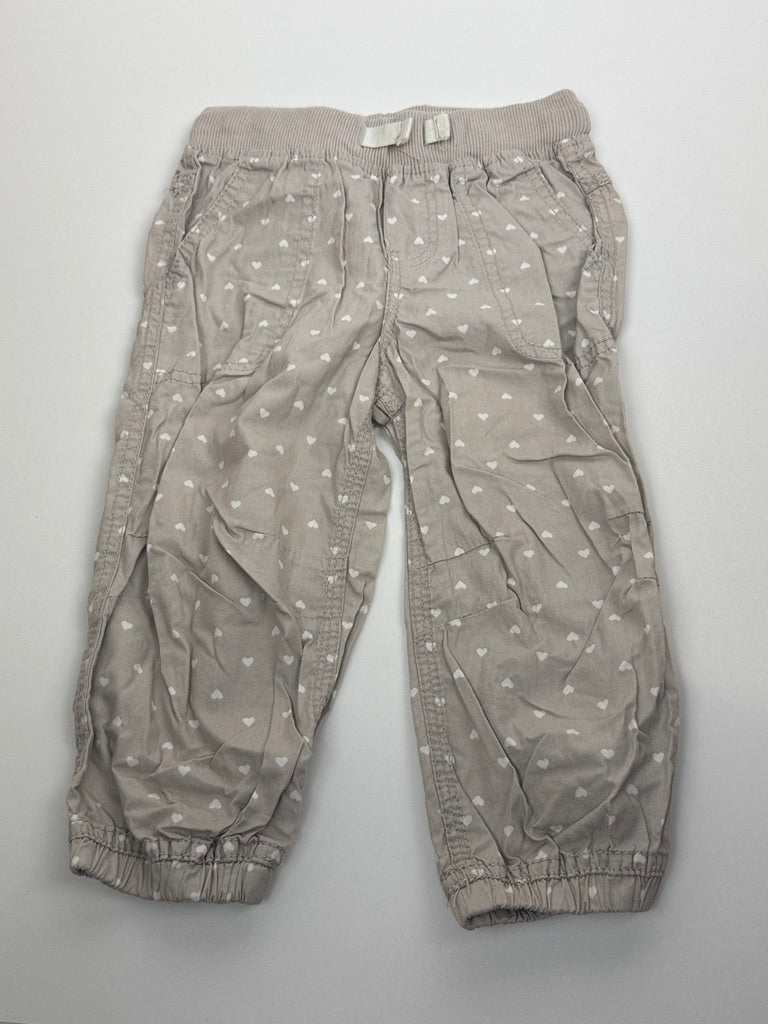 Lehké tříčtvrteční kalhoty v jemném světle šedém odstínu s drobným bílým vzorem srdíček působí něžně a zároveň prakticky. Příjemný bavlněný materiál je ideální na teplejší dny – do školky, školy i na venkovní hry. Elastický pas zajistí pohodlné nošení bez tlačení a stažené nohavice dobře drží tvar při pohybu. Stylově univerzální kousek, který se hodí především pro holčičku.