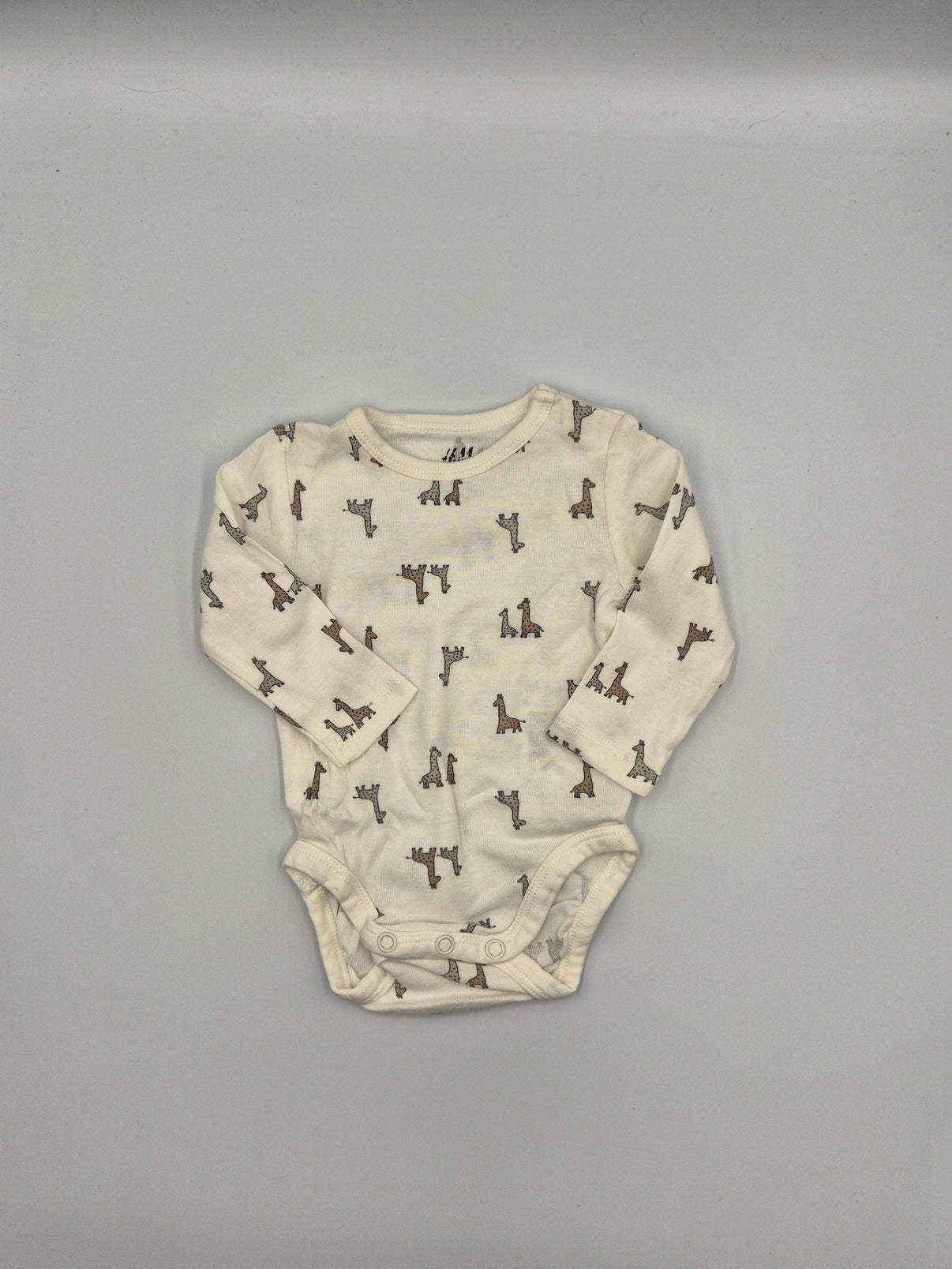 Roztomilé body s dlouhým rukávem v jemné krémové barvě zdobené drobným potiskem žiraf v přírodních hnědých tónech působí velmi něžně a hravě. Díky neutrálním barvám se snadno kombinuje s dalšími kousky.