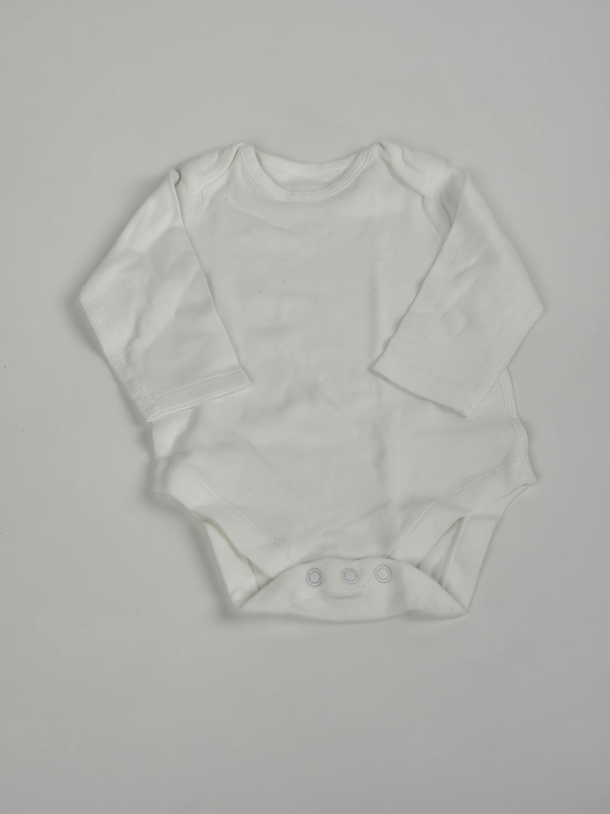 Jednoduché bílé body Marks & Spencer s dlouhým rukávem. Praktické zapínání na tři patentky mezi nožičkami. Klasický kousek z příjemné bavlny, vhodný na každodenní nošení nebo jako základní vrstva pod oblečení. Velikost 72.