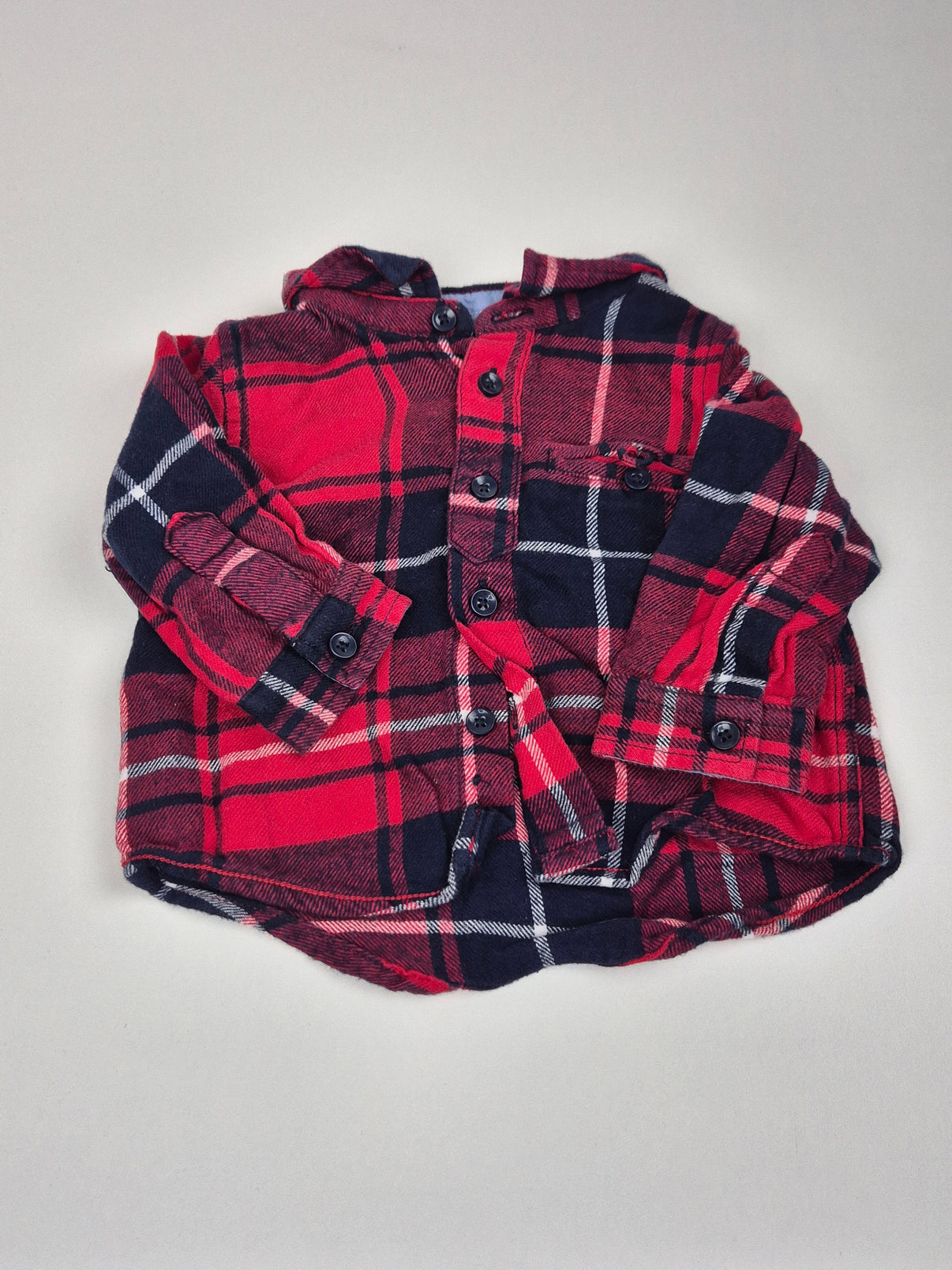 Tahle chlapecká košile značky Cool Club ve velikosti 62 má klasický kostkovaný vzor v červené a tmavě modré barvě. Je ušitá z měkké bavlny, má kapsičku na hrudi a zapínání...