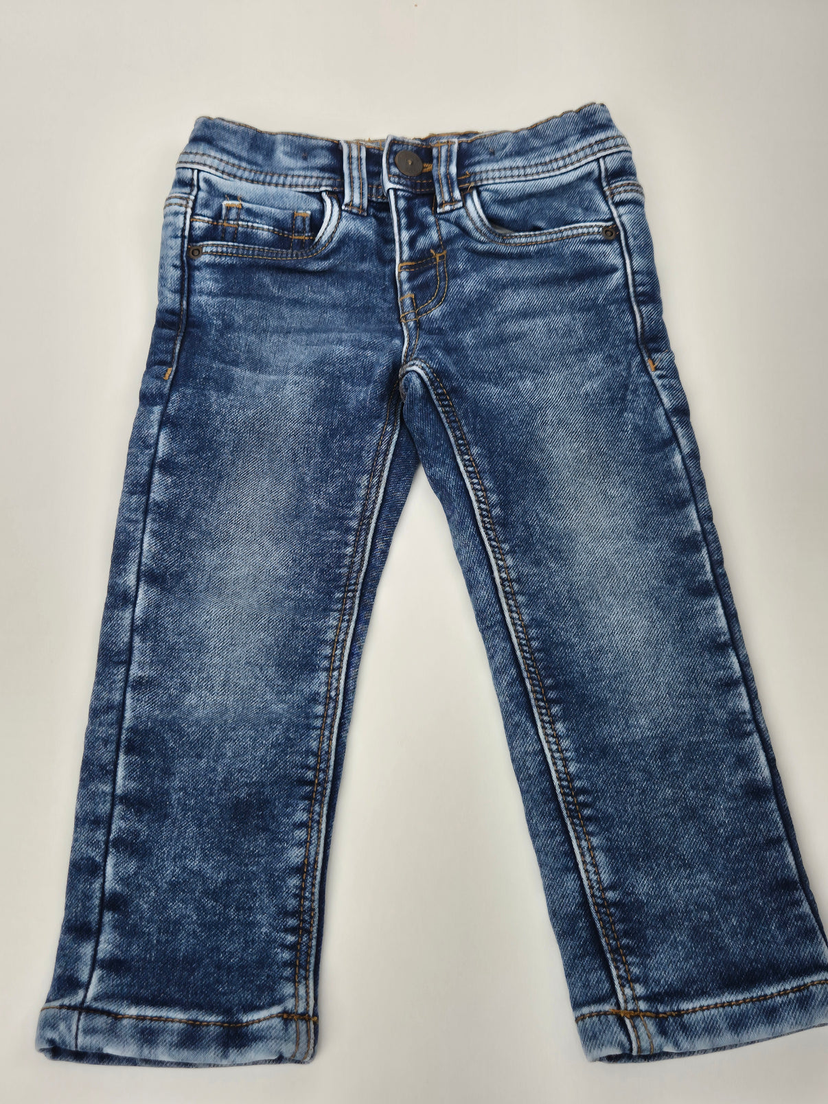 Klasické džíny značky C&A ve velikosti 92 jsou skvělým základem do šatníku každého malého dobrodruha. Světle modrý denim s opraným efektem dodává moderní vzhled, zatímco pohodlný střih a měkký materiál zaručují volnost pohybu. Kalhoty mají praktické kapsy, poutka na pásek a zapínání na patent, což usnadní oblékání.