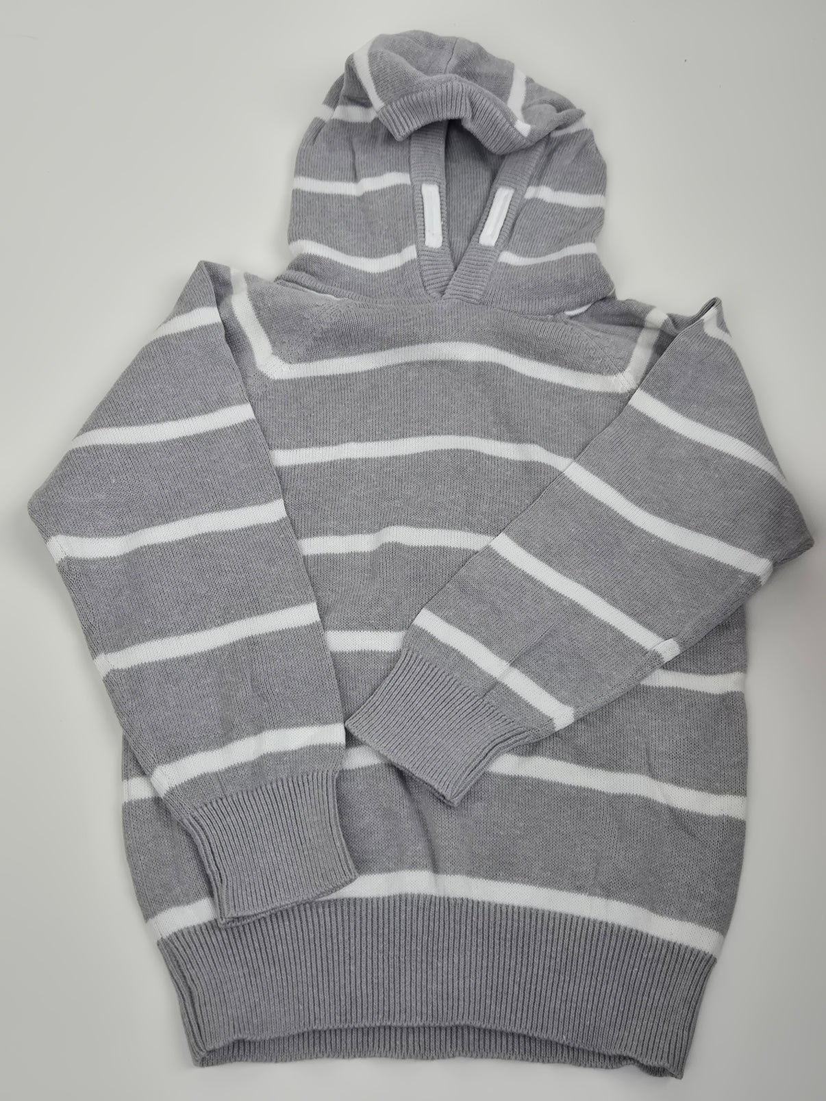 Pohodlný pletený svetr s kapucí značky Kiki&Koko v decentní šedé barvě s bílými pruhy je ideální na chladnější dny. Měkký materiál, žebrované lemy a kapuce zajišťují teplo a maximální komfort při nošení.