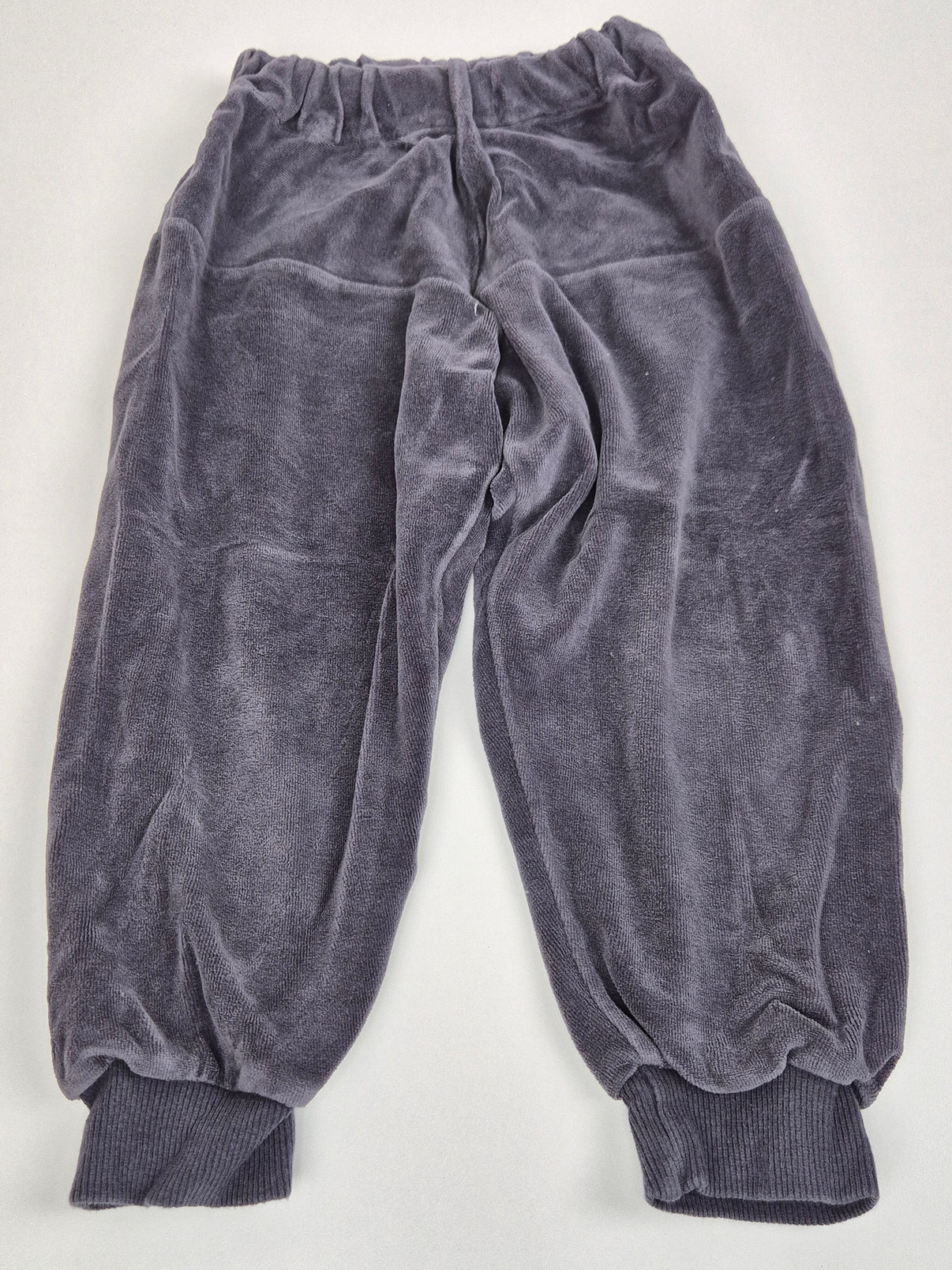 Měkoučké sametové tepláky v šedé barvě jsou skvělé na domácí pohodu, do školky i na volný čas. Mají pružný pas i náplety na nohavicích, takže pěkně sedí a nevyhrnují se....