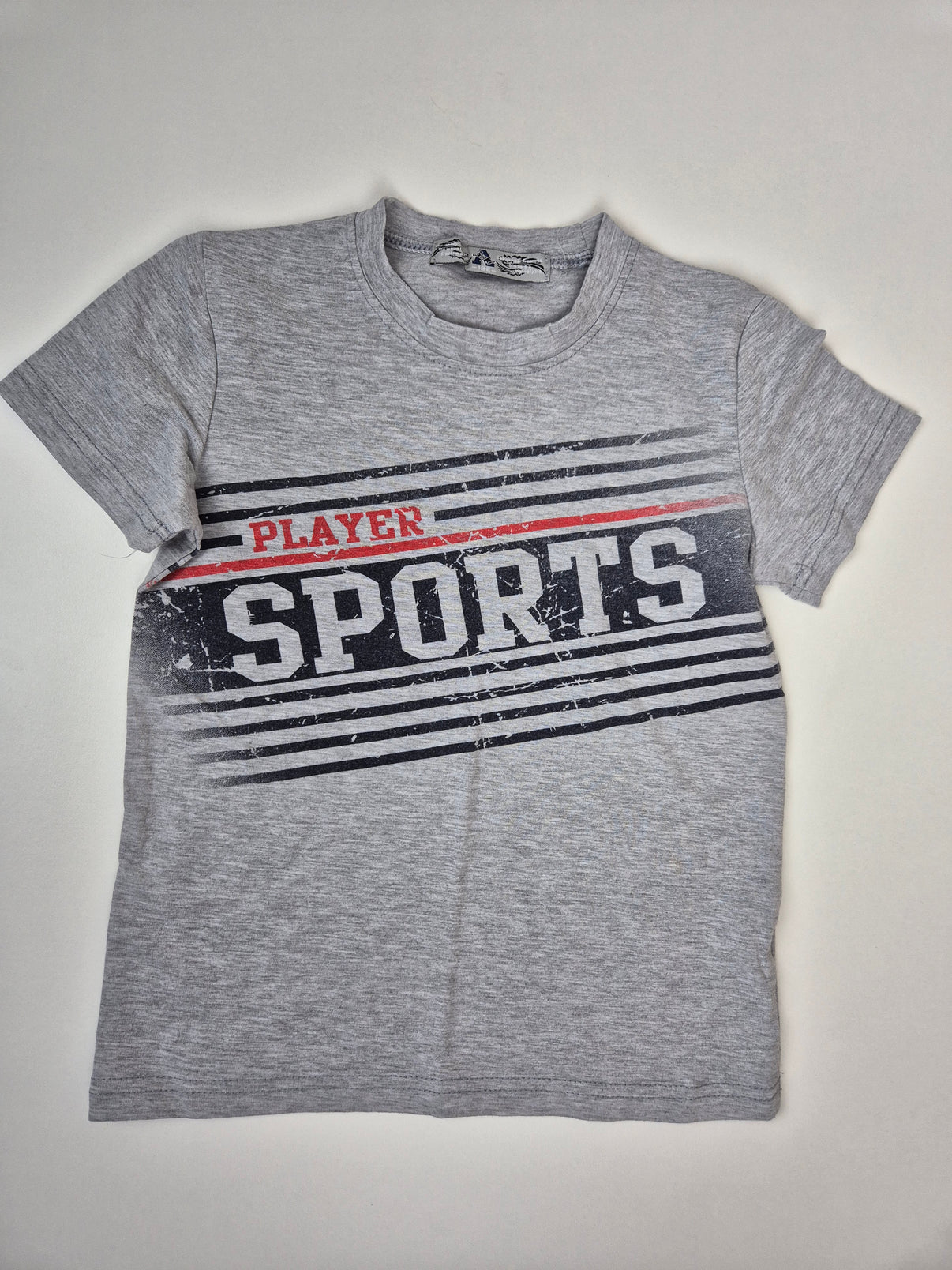 Šedé chlapecké tričko s výrazným sportovním potiskem PLAYER SPORTS v odstínech bílé, černé a červené. Lehký a příjemný materiál je ideální na každodenní nošení – do školy, na hřiště i volný čas. Univerzální sportovní styl, který sedí každému malému sportovci.