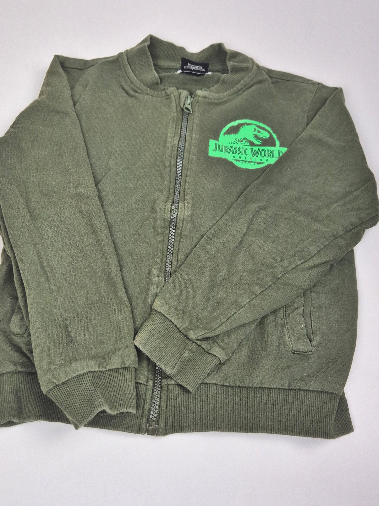 Khaki mikina na zip s motivem dinosaurů z filmu Jurassic World je skvělou volbou pro malé dobrodruhy 🦖🌿. Pohodlný střih s pružnými lemy, zapínání na zip a praktické kapsy z ní dělají ideální kousek na nošení do školy, na hřiště i na výlety. Výrazný potisk na zádech dodává mikině cool vzhled, který potěší každého kluka milujícího dinosaury. Díky příjemnému materiálu se dobře nosí a snadno kombinuje s tepláky i džíny.