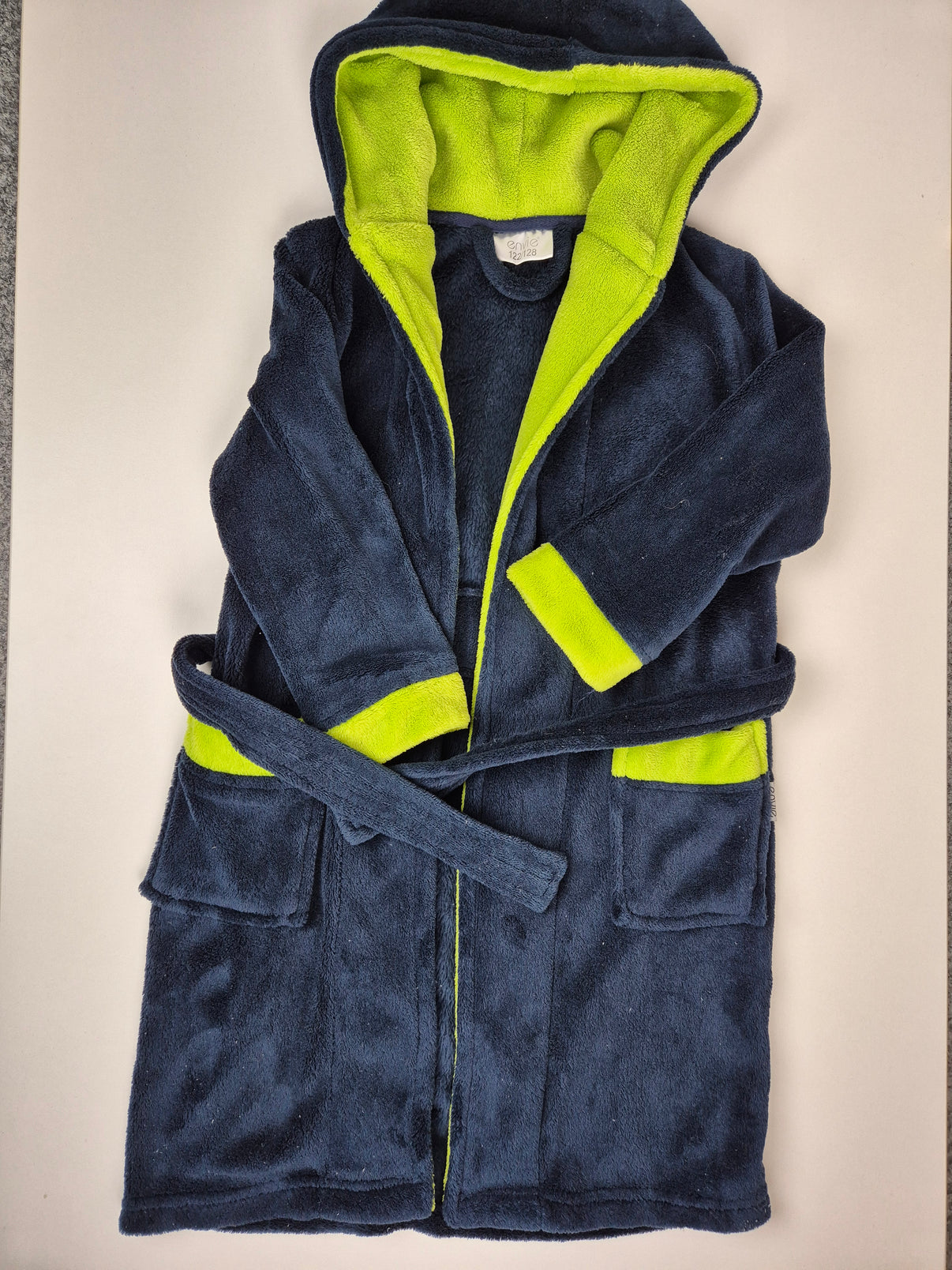 Měkoučký župan Envie ve velikosti 122/128 je ideální po koupání, na ranní pohodu i večerní lenošení. Tmavě modrá barva působí elegantně a krásně kontrastuje se zářivou limetkovou podšívkou. Župan je z velmi hebkého a hřejivého fleecu, má kapuci, praktické kapsy a pásek na zavazování.