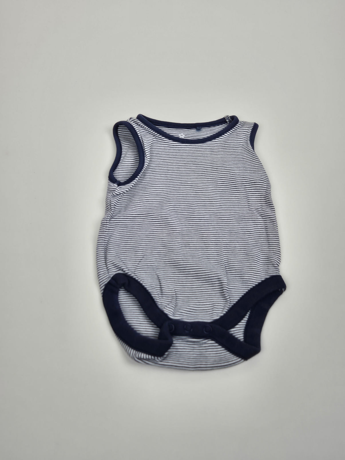 Letní body bez rukávů značky Next ve velikosti 68 je ideální volbou pro teplé dny. Jemný proužkovaný vzor v tmavě modré a bílé doplňuje tmavě modré lemování, které dodává celkovému vzhledu elegantní námořnický styl. Díky praktickému zapínání mezi nožičkami je převlékání i přebalování rychlé a pohodlné. Skvělý univerzální kousek pro malého chlapečka na doma i na cesty.