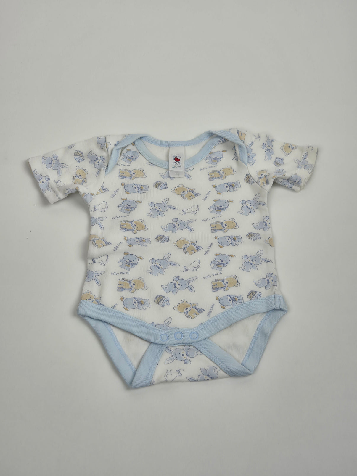 Roztomilé body značky C&A ve velikosti 62 je ideální pro chlapečky. Bílý podklad zdobí jemný potisk s motivem zvířátek ve světle modré a béžové barvě a nápisem „Polly farm“, což...