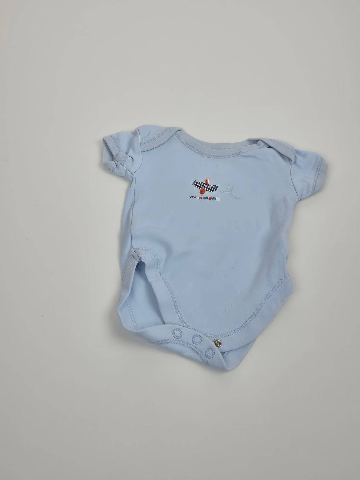 Světle modré body značky George s krátkým rukávem a decentním výšivkovým motivem autíčka a nápisem „vroom“ je jemným a praktickým kouskem pro miminko – ideální pro chlapečka. Příjemný bavlněný materiál se postará o pohodlí, zatímco zapínání mezi nožičkami usnadní přebalování. Skvělé na běžné denní nošení doma i venku.