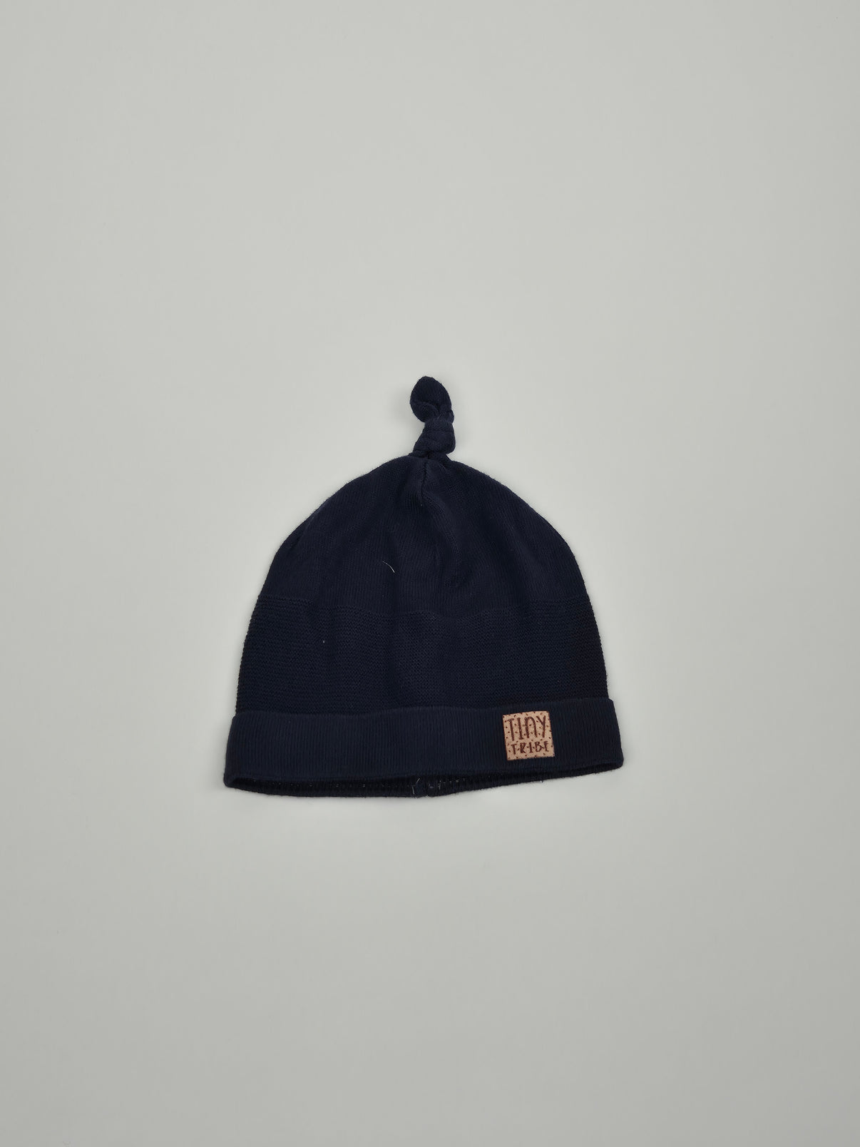 Tmavomodrá čepice Broel s milým uzlíkem na vrcholu je stylovým a praktickým doplňkem pro miminko. Díky bavlněnému úpletu je příjemná na dotek a ideální na jaro či podzim. Velikost 62/68 s obvodem hlavy cca 43 cm odpovídá přibližně věku 3–6 měsíců.