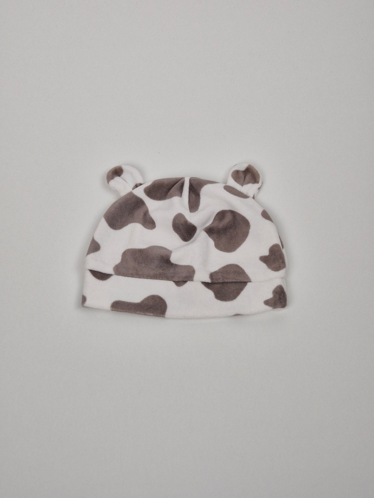 Měkoučká čepička z kolekce H&M s roztomilým zvířecím motivem a oušky, která potěší každé miminko. Bílý základ s hnědými skvrnami připomíná vzor kravičky, takže čepička nejen zahřeje, ale i pobaví. Vyrobená z hebkého bavlněného úpletu, ideální na každodenní nošení i jako stylový doplněk na focení. Vhodná pro holčičky i chlapečky.