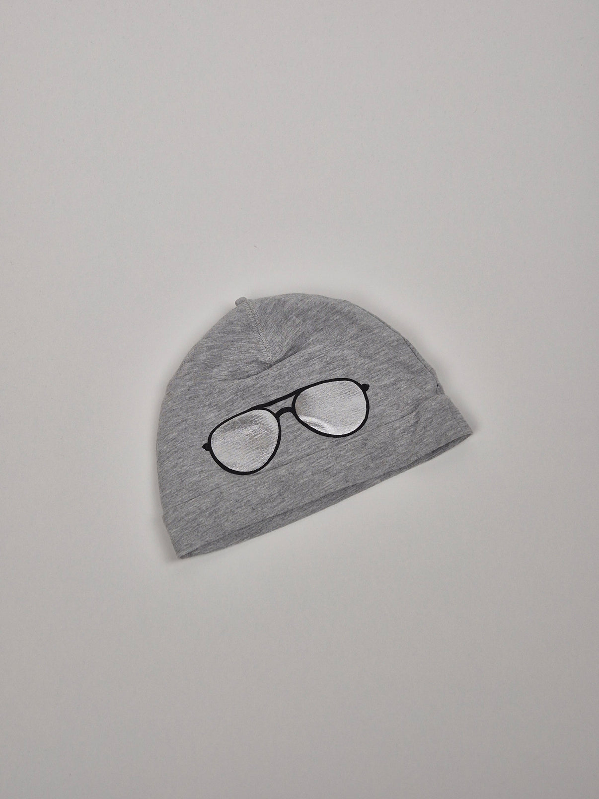 Stylová bavlněná čepička z jemného šedého úpletu s vtipným potiskem černých brýlí – ideální doplněk pro malé frajery. Díky pružnému materiálu krásně sedí na dětské hlavičce a poskytuje pohodlí během chladnějších dnů. Skvělá volba na procházky i běžné nošení. Pochází z kolekce značky H&M a hodí se pro chlapečky.