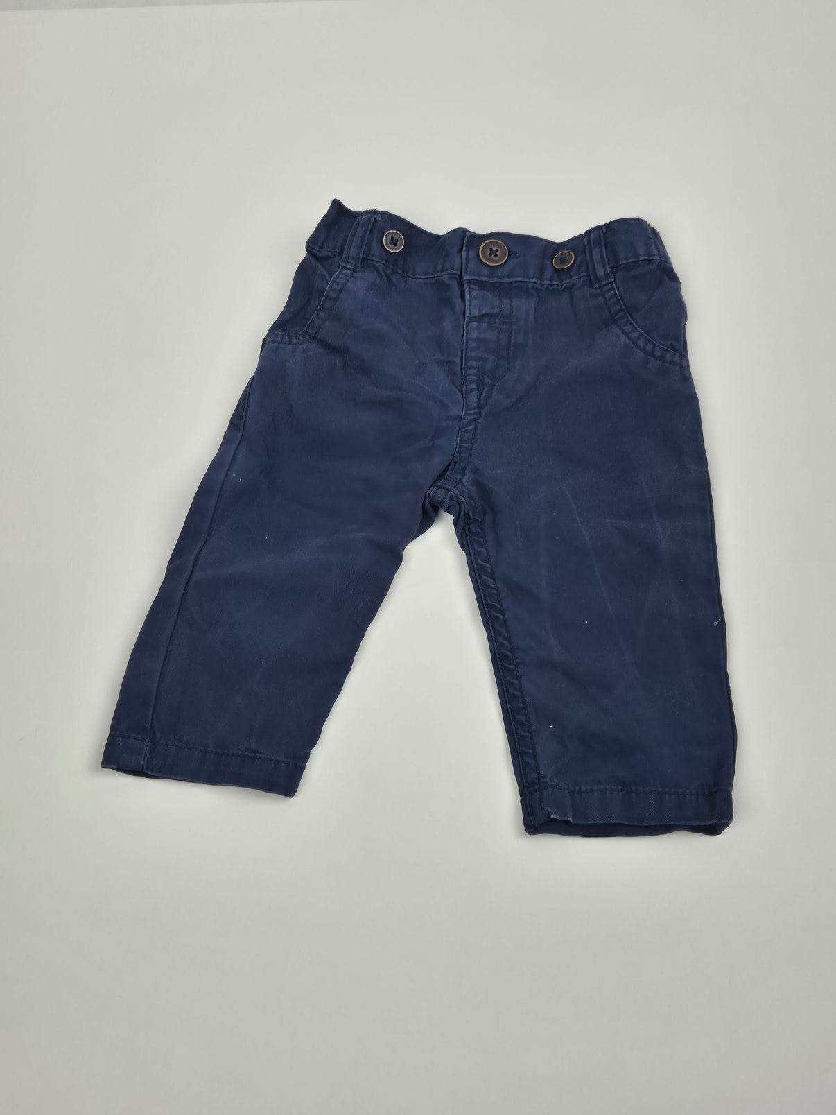 Stylové kalhoty značky F&F ve velikosti 68 v elegantní tmavě modré barvě jsou skvělým kouskem pro malé parádníky. Kalhoty mají klasický střih s poutky na pásek a ozdobnými knoflíky v...