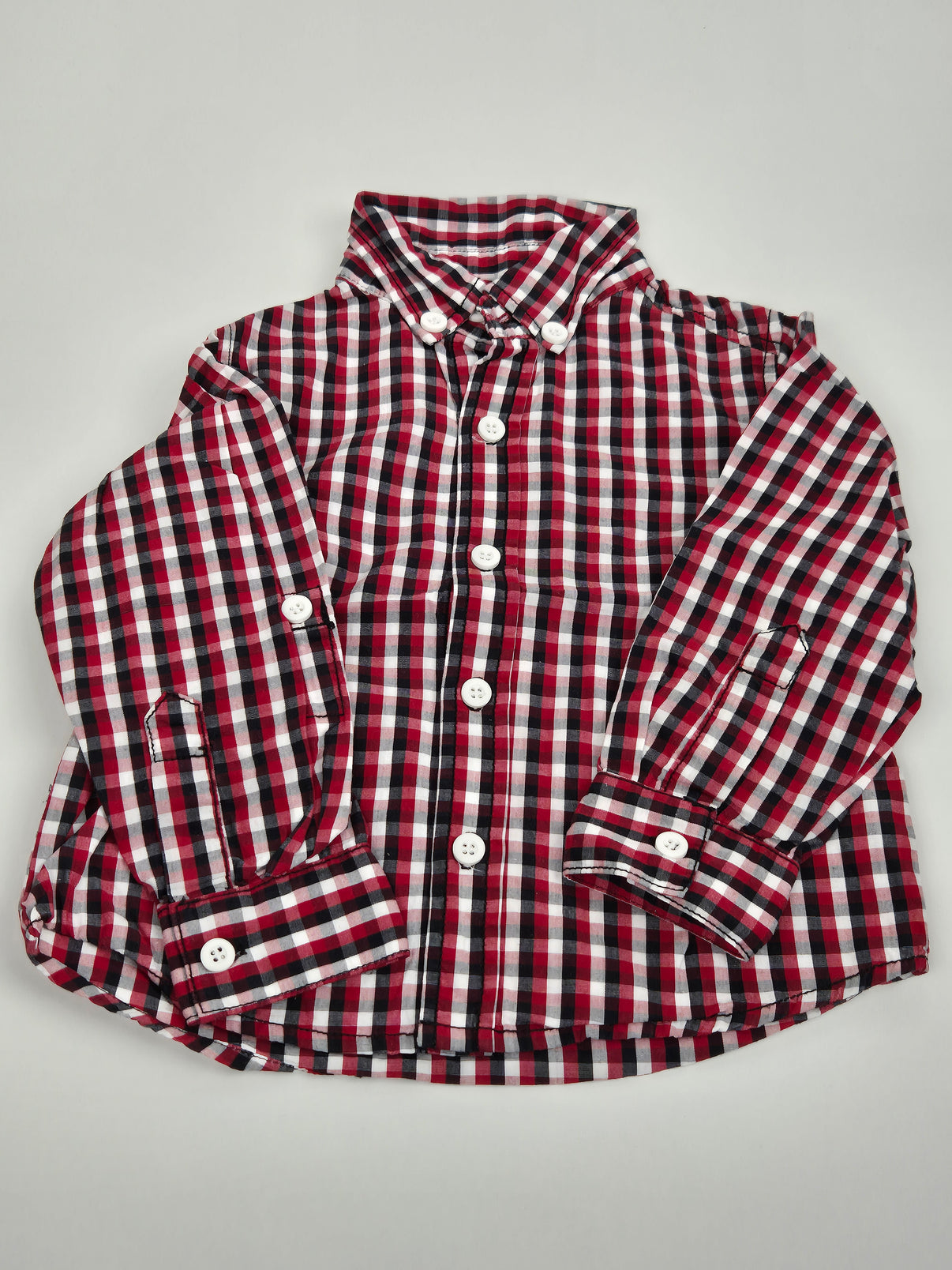 Stylová chlapecká košile F&F ve velikosti 92 s dlouhým rukávem je ideální volbou pro slavnostnější i běžné příležitosti. Kostkovaný vzor v odstínech červené, bílé a tmavě modré dodává košili šmrnc, bílá knoflíková léga pak podtrhuje celkový elegantní vzhled. Lehký a příjemný materiál zaručuje pohodlí při nošení. Skvěle se hodí třeba k džínám nebo chinos kalhotám.