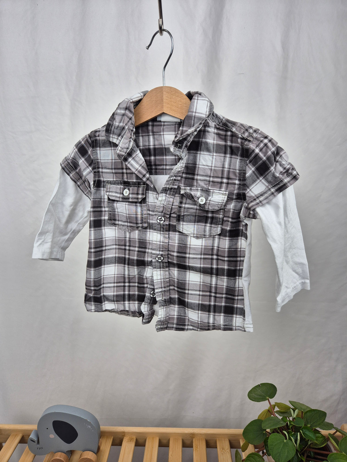Stylová chlapecká košile Gomeb ve vrstveném designu kombinuje vzhled kostkované krátkorukávové košile s bílými dlouhými rukávy – ideální volba pro ležérně-elegantní outfit. Košile v odstínech černé, šedé a bílé má dvě kapsy na hrudi a pohodlné zapínání na knoflíky. Díky příjemnému materiálu je skvělá do školky, na návštěvu i rodinnou oslavu. Trendy kousek pro malého parádníka, který se rád obléká stylově, ale pohodlně.