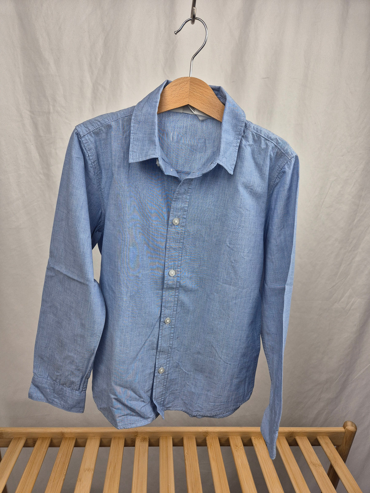 Světle modrá chlapecká košile H&M ve velikosti 128 je ideální volbou na slavnostnější události i jako elegantní doplněk každodenního outfitu. Lehký, prodyšný materiál a klasický střih se zapínáním na knoflíky zaručí pohodlí během celého dne. Snadno se kombinuje třeba s chino kalhotami nebo džínami.