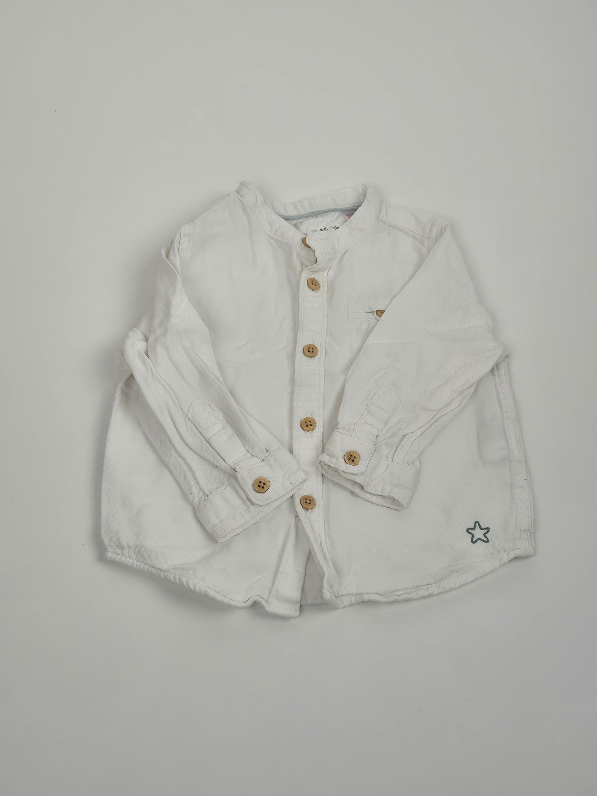 Stylová chlapecká košile Zara ve velikosti 68 v čistě bílé barvě s drobnými detaily jako jsou dřevěné knoflíky a výšivka hvězdičky. Košile má pohodlný střih a měkký materiál, který je ideální pro citlivou dětskou pokožku. Perfektní volba pro slavnostní příležitosti, rodinné návštěvy i každodenní eleganci. Kombinuj s kalhotami nebo džínami a vytvoř roztomilý outfit pro malého gentlemana.