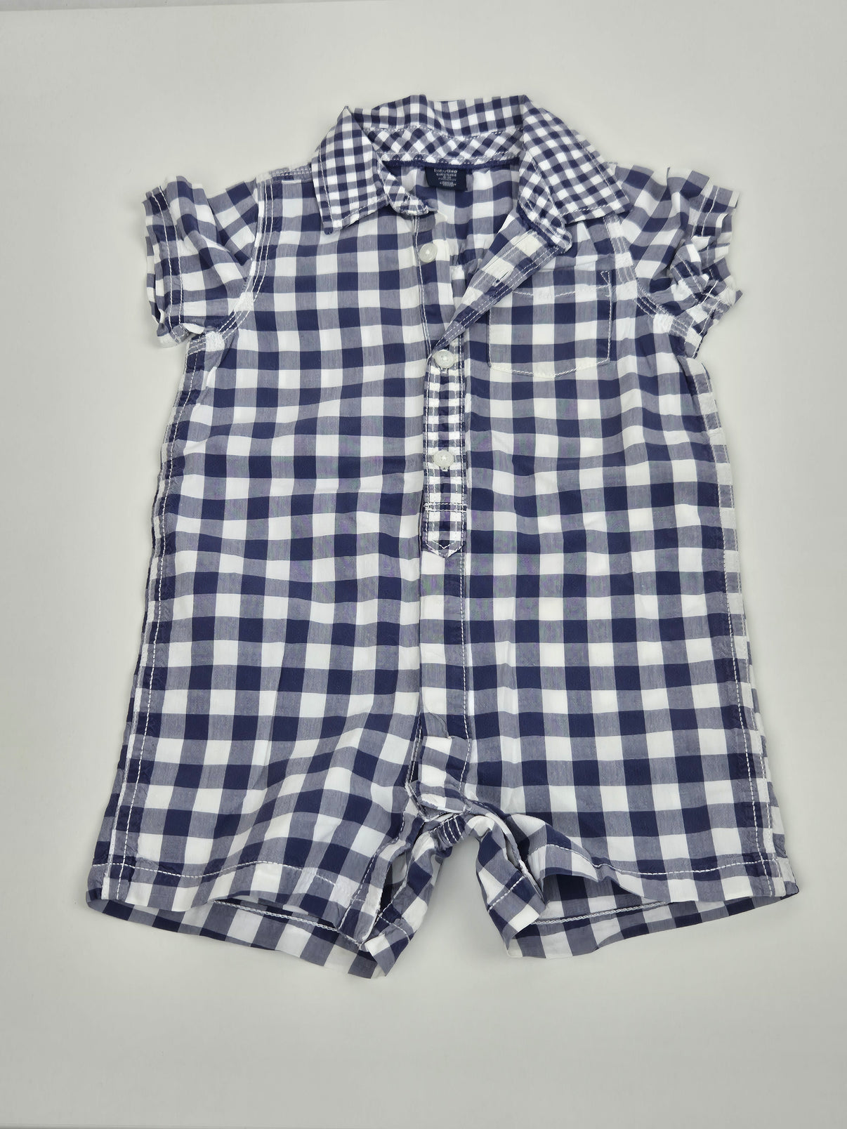 Letní chlapecký kraťasový overal z kolekce GAP v elegantním košilovém stylu. Kostkovaný vzor v kombinaci tmavě modré a bílé působí svěže a stylově, ideální na slavnostní příležitosti i procházky ve městě. Krátké rukávy s decentním řasením, límeček a zapínání na knoflíky dodávají overalu šmrnc klasické košile. Lehký a prodyšný materiál zajistí maximální pohodlí během horkých letních dnů.