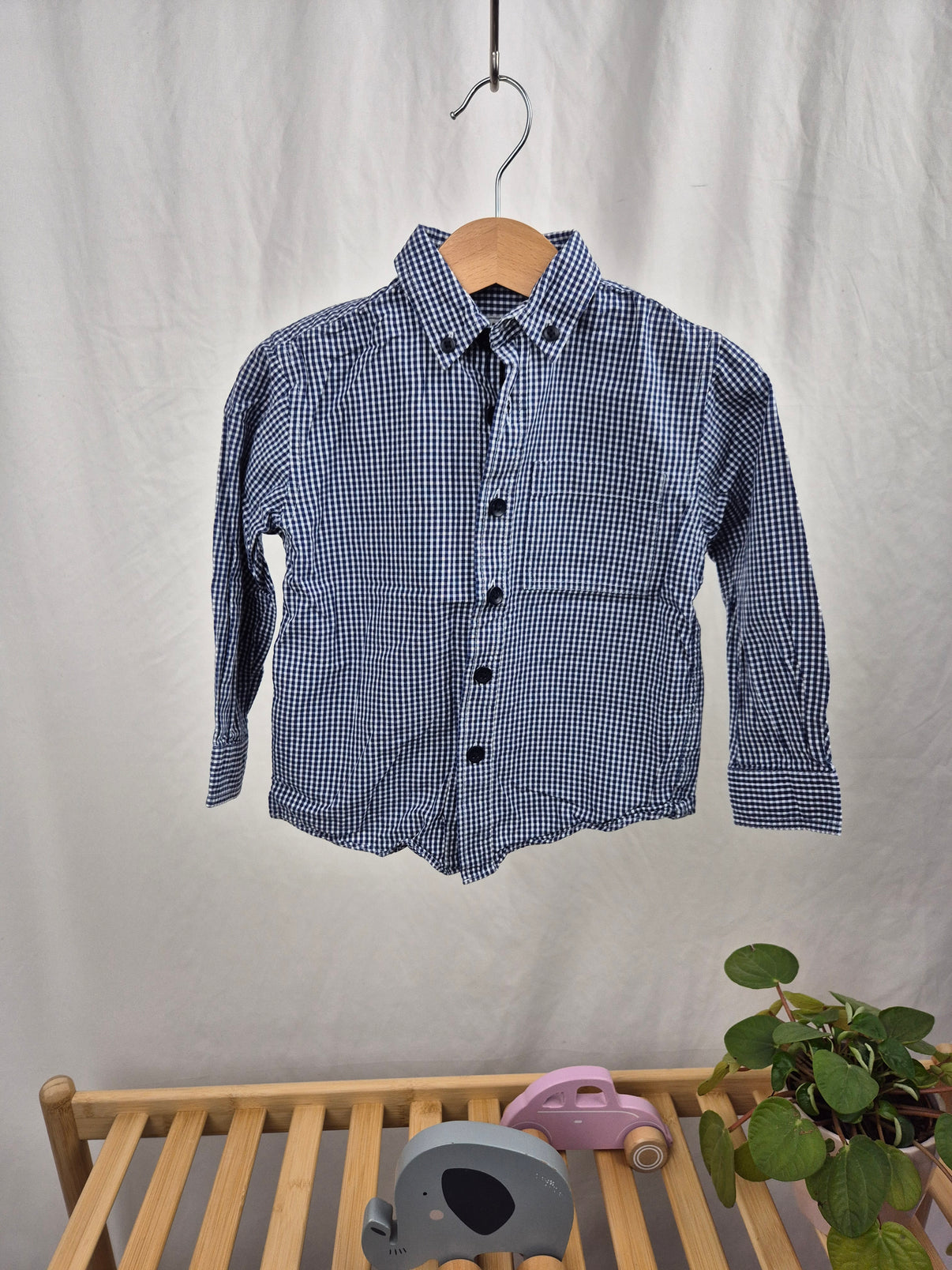 Chlapecká kostkovaná košile Primark ve velikosti 98, ideální pro chladnější dny díky dlouhému rukávu. V klasickém modro-bílém provedení s drobným vzorem, který se hodí jak na každodenní nošení, tak na...