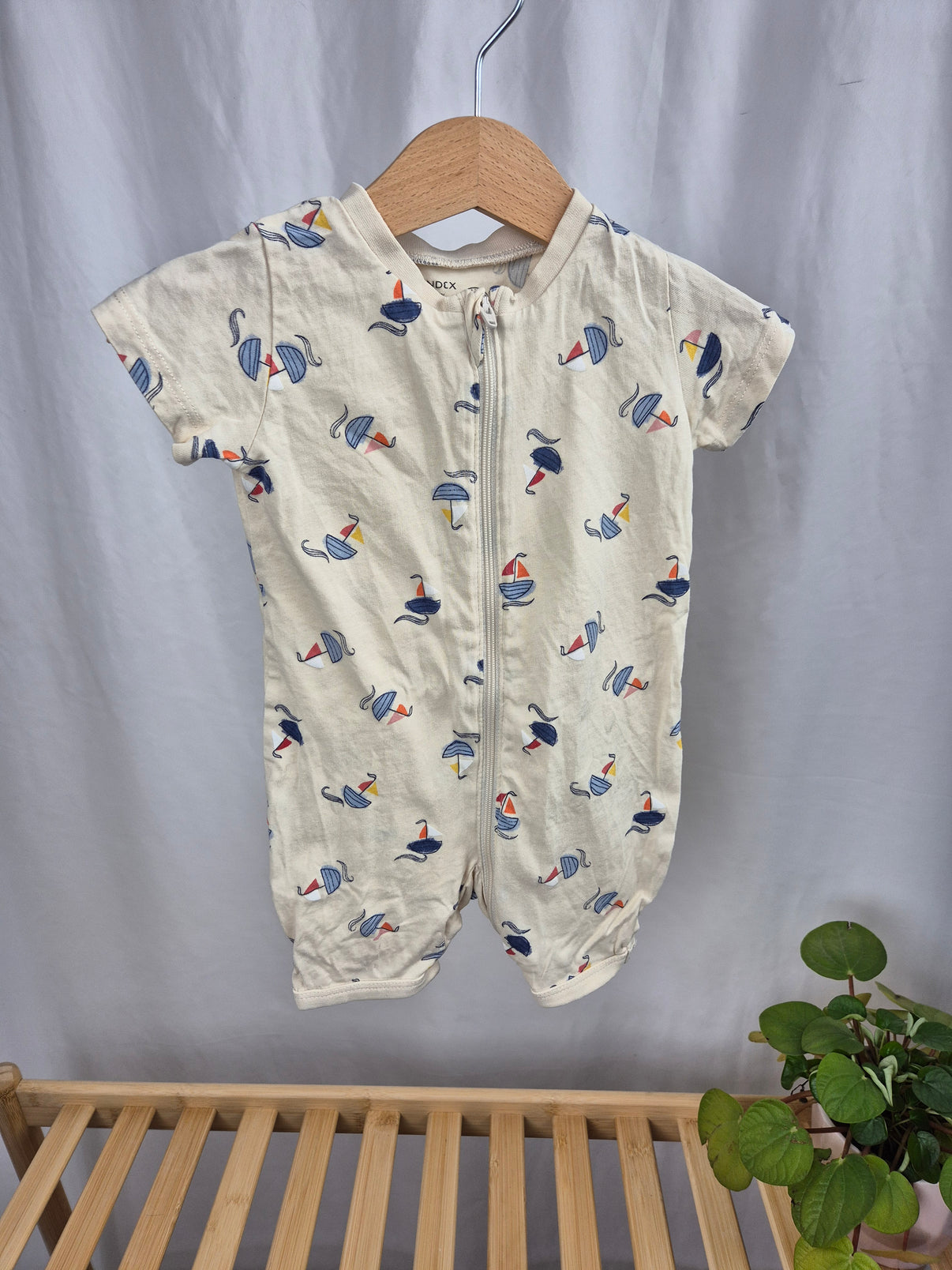 Letní kraťasový overal Lindex pro miminko je ideální volbou na teplé dny. Přírodní smetanový podklad doplňuje roztomilý potisk s barevnými plachetnicemi v modré, červené a žluté. Praktické zapínání na zip usnadní oblékání i přebalování. Díky krátkým rukávům a nohavičkám je kousek perfektní na ven i na spaní v horkých dnech.