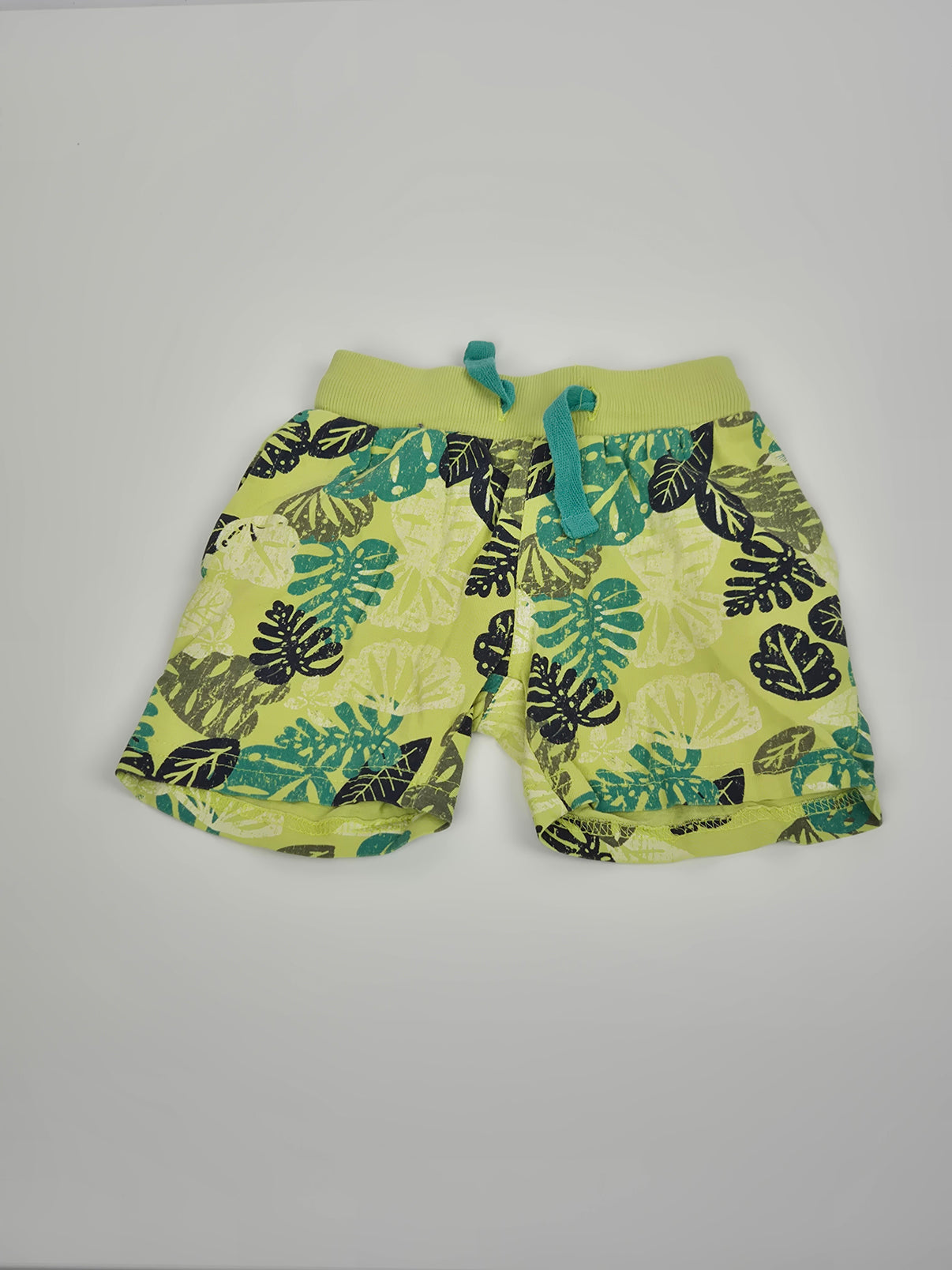 Letní chlapecké kraťasy značky Lupilu ve velikosti 86/92 v zářivě limetkové barvě s celoplošným tropickým potiskem listů v odstínech zelené, modré a černé. Kraťasy mají pohodlný pružný pas se šňůrkou na stažení a dvě postranní kapsy na malé poklady. Lehký bavlněný materiál je ideální na horké dny – na hřiště, k vodě i na dovolenou. Hravý letní kousek pro malé dobrodruhy.