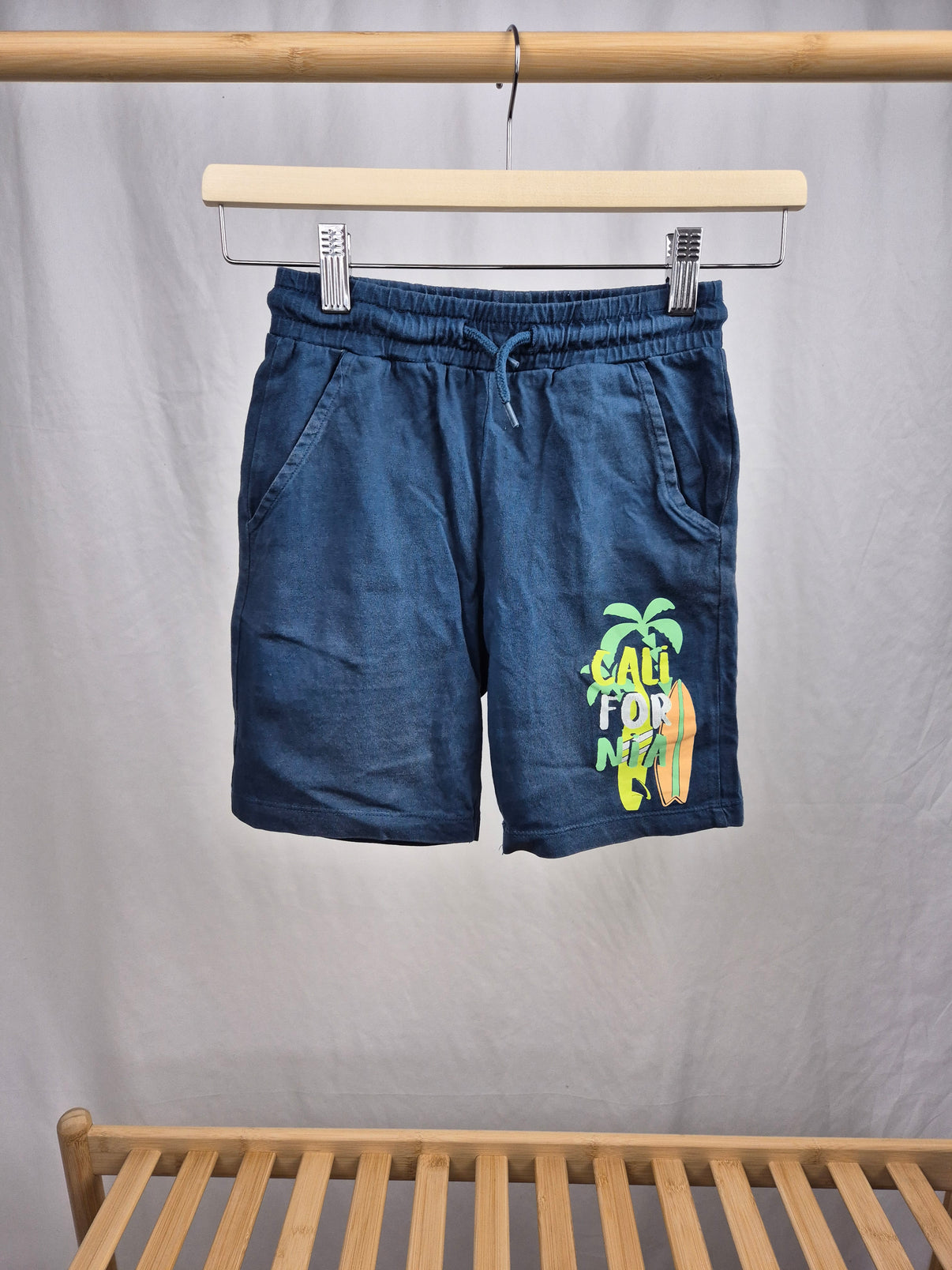 Letní chlapecké kraťasy Pepco ve velikosti 128 v příjemném džínově modrém odstínu s nápisem "California" a motivem surfu. Praktické kapsy, pohodlný střih a pas na gumu se stahovací šňůrkou zaručují pohodlí při všech letních dobrodružstvích. Skvělý kousek na hřiště, výlety i dovolenou.