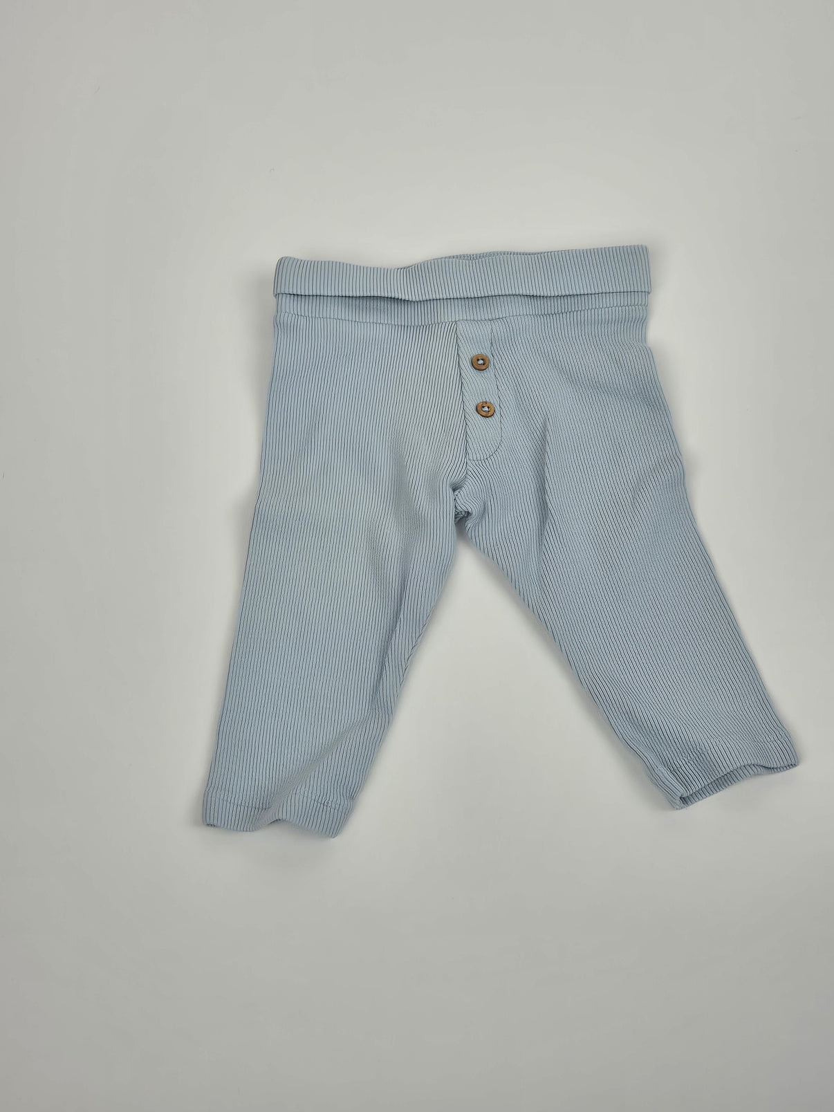 Pohodlné žebrované legíny značky Marks & Spencer ve velikosti 72 jsou skvělým základem do šatníku každého miminka. Světle modrá barva působí jemně a čistě, dva dekorativní knoflíky v pase dodávají...