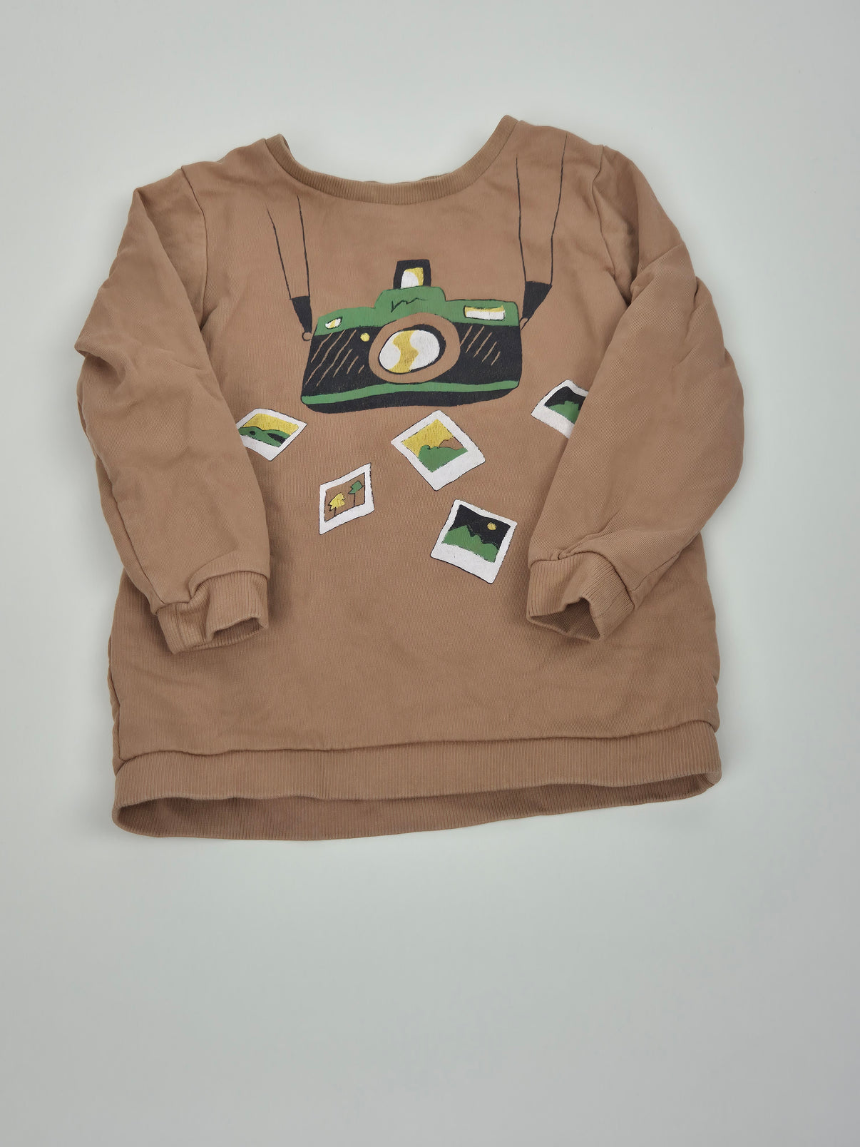 Originální dětská mikina v teplém světle hnědém odstínu zaujme veselým potiskem foťáku s padajícími fotografiemi – ideální kousek pro malého dobrodruha nebo budoucího objevitele. Měkký bavlněný materiál a pohodlný střih...
