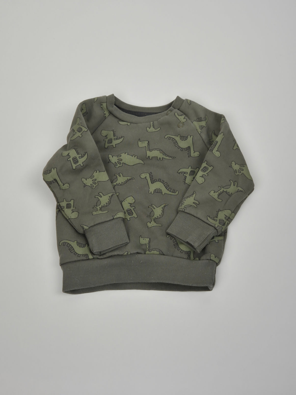 Stylová dětská mikina v tlumené olivově zelené barvě s celoplošným potiskem veselých dinosaurů. Měkký a pohodlný materiál s elastickými lemy na rukávech a spodním okraji zajistí pohodlí během celého dne. Mikina se snadno kombinuje s džínami i tepláčky a skvěle se hodí na každodenní nošení do školky, na hřiště i na výlety do přírody. Hravý design potěší hlavně malé kluky, ale slušet bude i odvážným holčičkám. Kousek z kolekce Primark.
