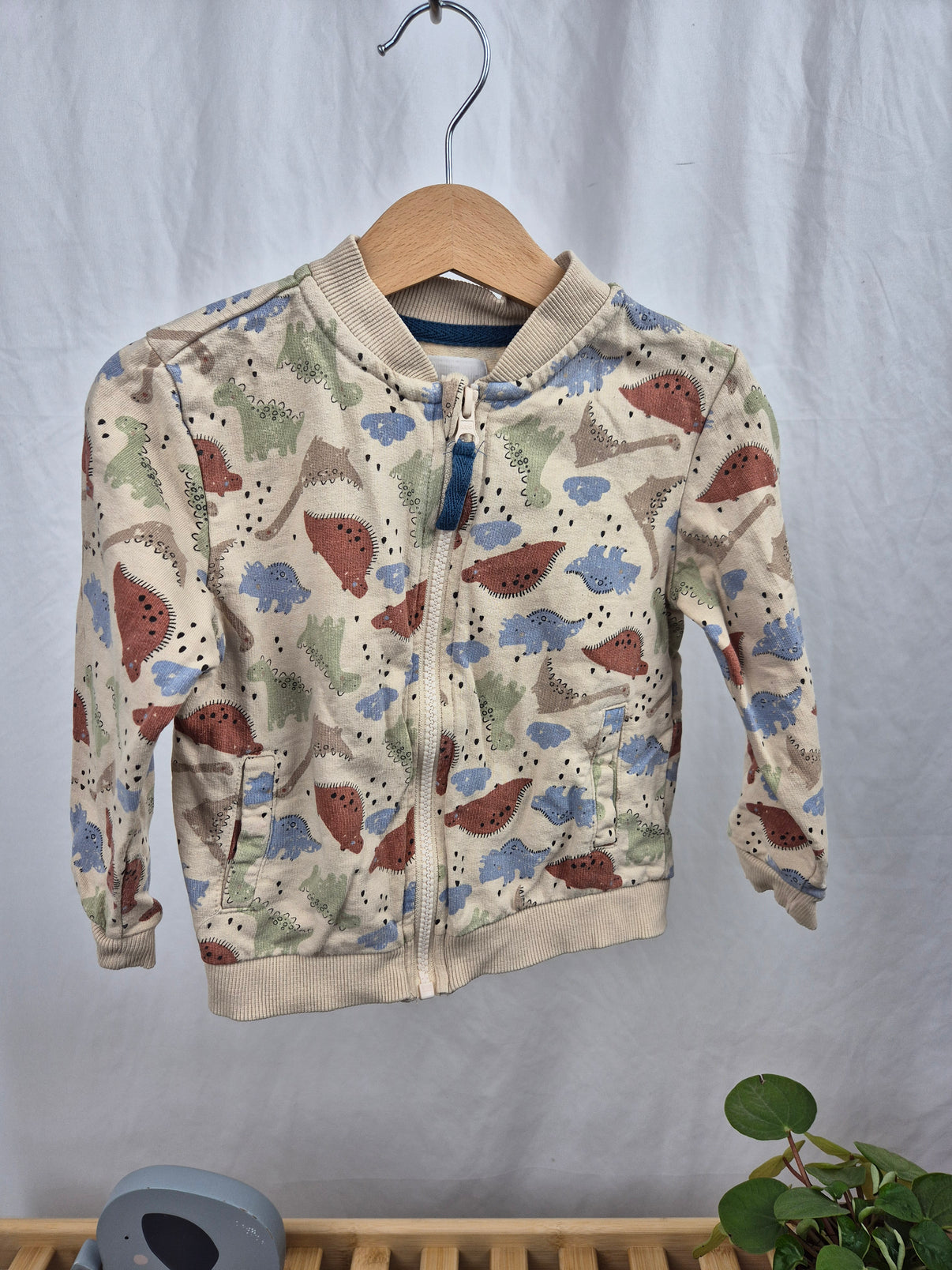 Pohodlná dětská mikina značky Sinsay ve velikosti 98 potěší všechny malé milovníky dinosaurů. Krémový podklad zdobí roztomilý potisk dinosauřích siluet v jemných odstínech hnědé, zelené, modré a rezavé. Mikina má praktické zapínání na zip, žebrované lemy na rukávech i spodním okraji a dvě malé kapsy na přední straně. Příjemný bavlněný materiál se postará o pohodlí při hře i odpočinku. Skvělý kousek do školky, na výlety i běžné nošení pro kluky.