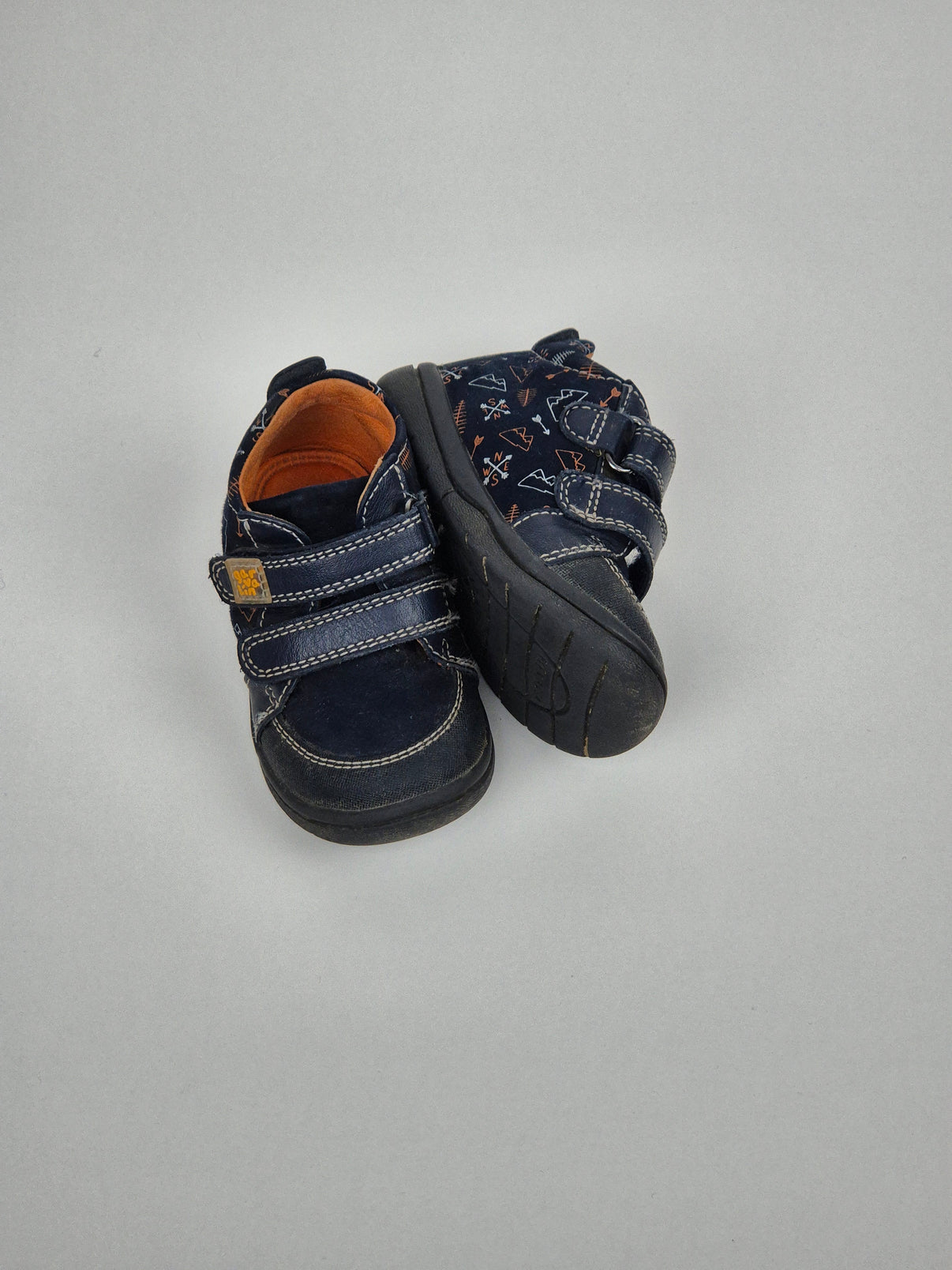 Stylová a pevná dětská obuv Garvalín v tmavě modré barvě s veselým motivem hor a stromků na bocích, doplněná o kontrastní oranžovou podšívku. Kvalitní kožený svršek a měkká vnitřní stélka zajišťují maximální komfort při každodenním nošení. Dvojité zapínání na suchý zip usnadňuje obouvání. Ideální volba pro kluky na podzimní i jarní dobrodružství ve školce, městě i přírodě.