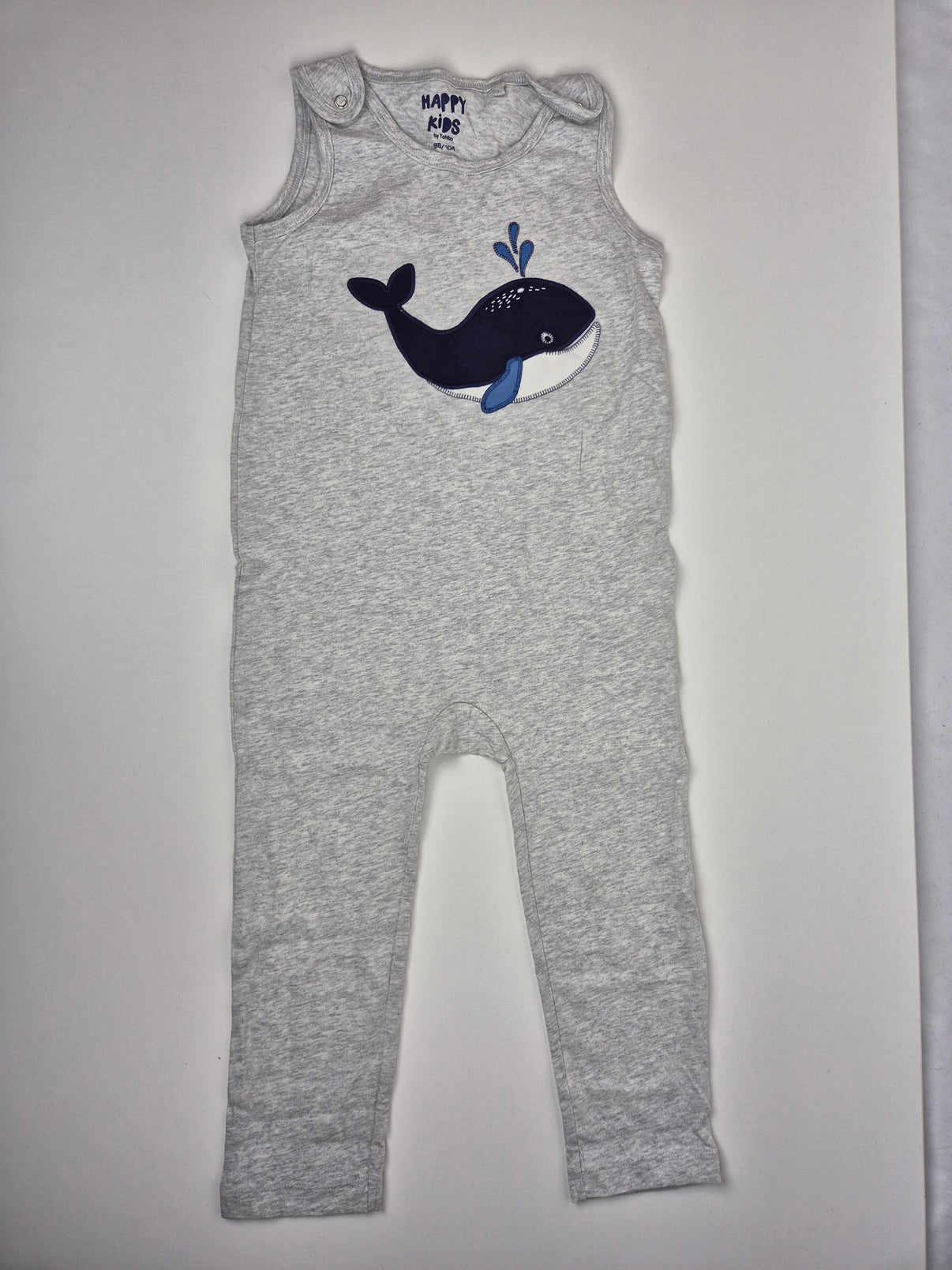 Letní overal bez rukávů značky Tchibo ve velikosti 98/104 pro kluky. Světle šedý melírovaný základ doplňuje roztomilá aplikace velryby s výšivkou, která zaujme na první pohled. Praktické zapínání na ramínkách...