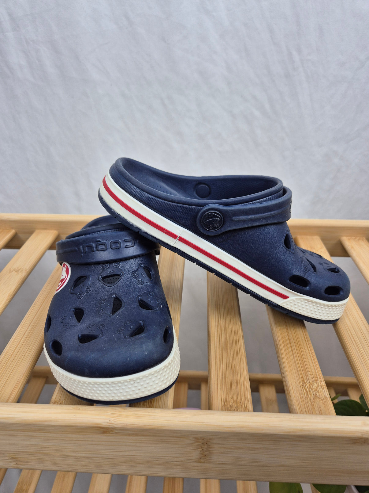 Letní pantofle značky Coqui v námořnicky modré barvě s kontrastním bílým lemem a červenými detaily potěší každého malého dobrodruha. Díky perforovanému designu jsou dokonale prodyšné, a tak ideální na horké...