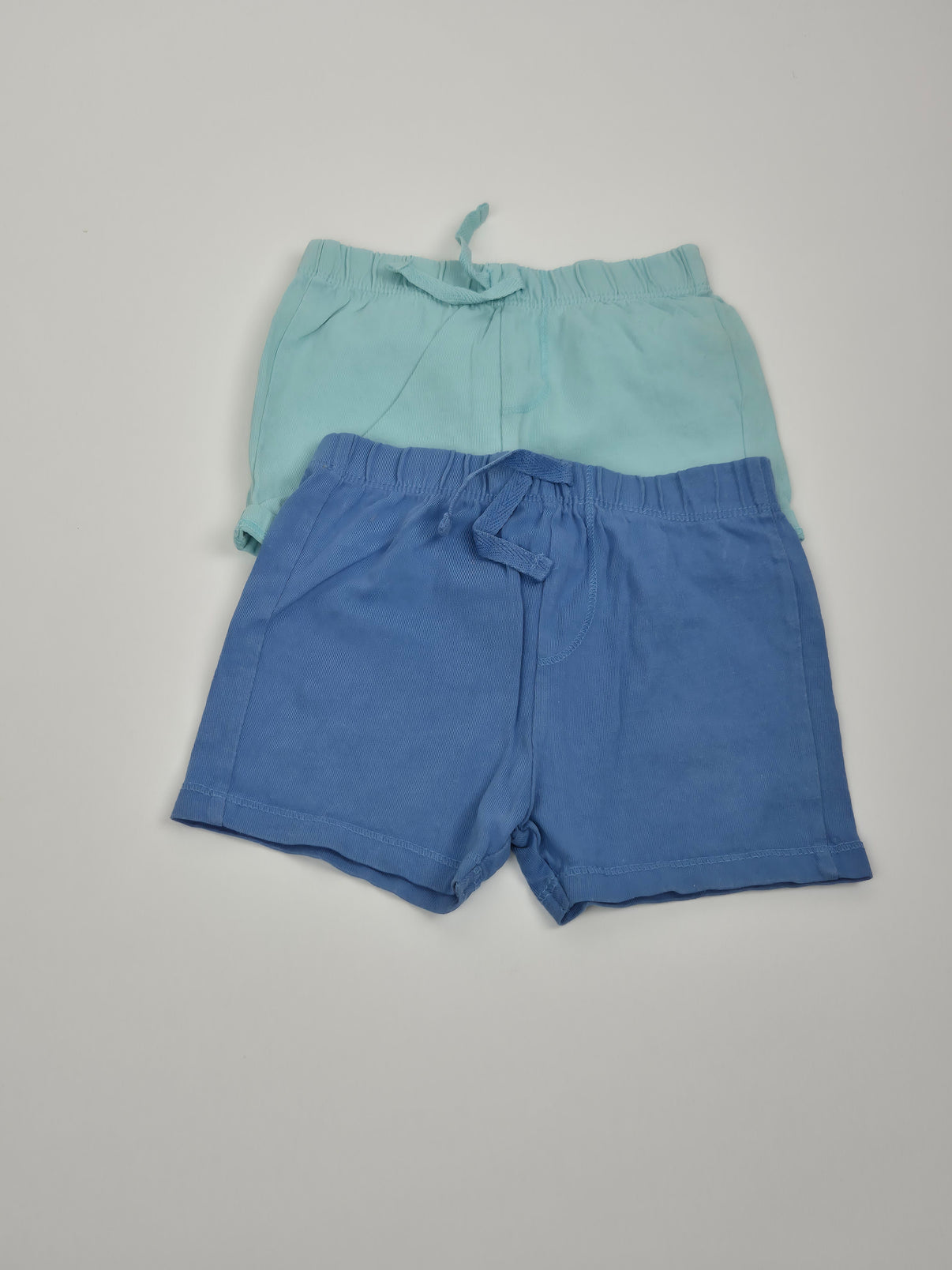 Praktická sada 2 kusů kraťasů značky F&F ve velikosti 68 je skvělou volbou pro teplé letní dny. Světle tyrkysové a středně modré kraťasy mají pohodlný střih s měkkým pasem na gumu a ozdobným zavazováním. Lehký, prodyšný materiál zajistí volnost pohybu i maximální komfort. Ideální volba pro malé kluky na hraní, výlety i odpočinek.