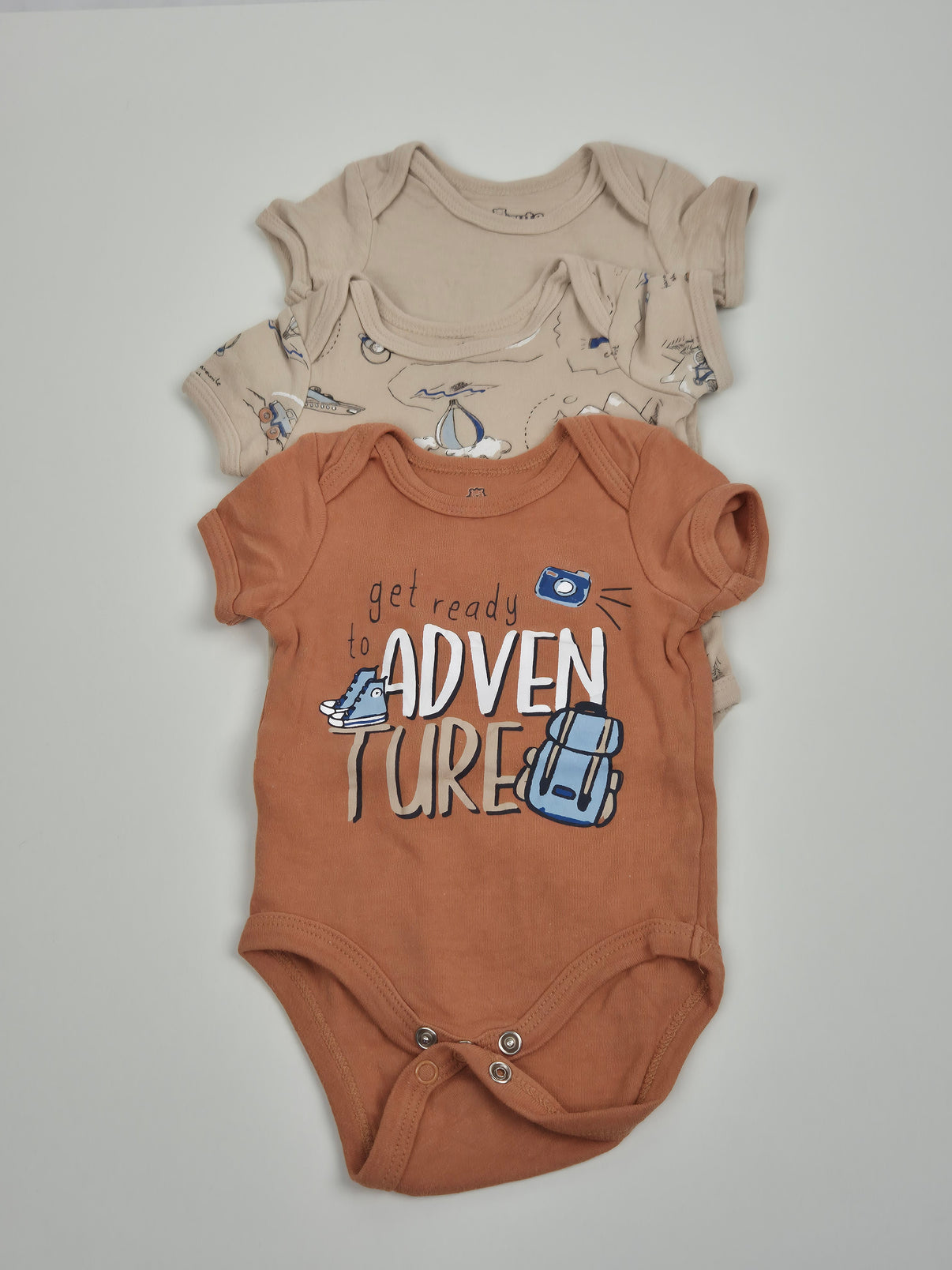 Sada 3ks bavlněných body s krátkým rukávem od Pepco ve velikosti 68 potěší každého malého dobrodruha. V balení najdeš jeden jednobarevný kousek, jeden s veselým cestovatelským potiskem a jeden v trendy rezavé barvě s nápisem "Get ready to adventure" a obrázky foťáku, batohu a tenisky. Praktické zapínání mezi nožičkami usnadňuje oblékání i přebalování. Příjemný materiál a pohodlný střih jsou ideální na doma i na cesty. Kousek vhodný pro kluky.