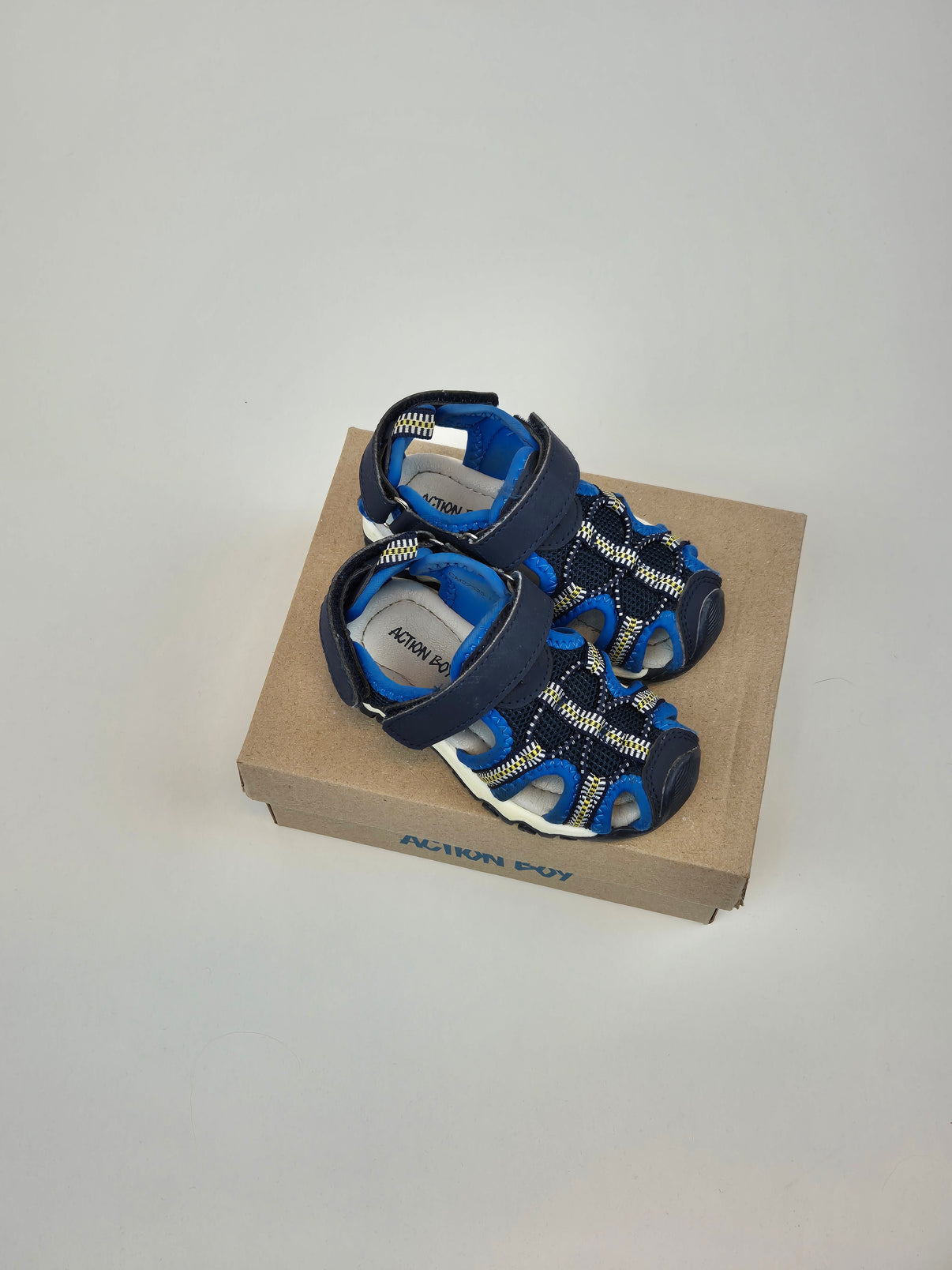 Parádní letní sandálky značky Action Boy ve velikosti 22 pro malé dobrodruhy. Sportovní střih s uzavřenou špičkou chrání prsty při venkovních hrách, zatímco kombinace tmavě modré, královsky modré a bílé barvy spolu s kontrastními detaily vynikne na každém kroku. Praktické zapínání na suchý zip a protiskluzová podrážka se postarají o bezpečnost a pohodlí při každém výletu – ať už na hřiště nebo na procházku do parku. Skvělé pro kluky, kteří nechtějí v létě stát na místě!