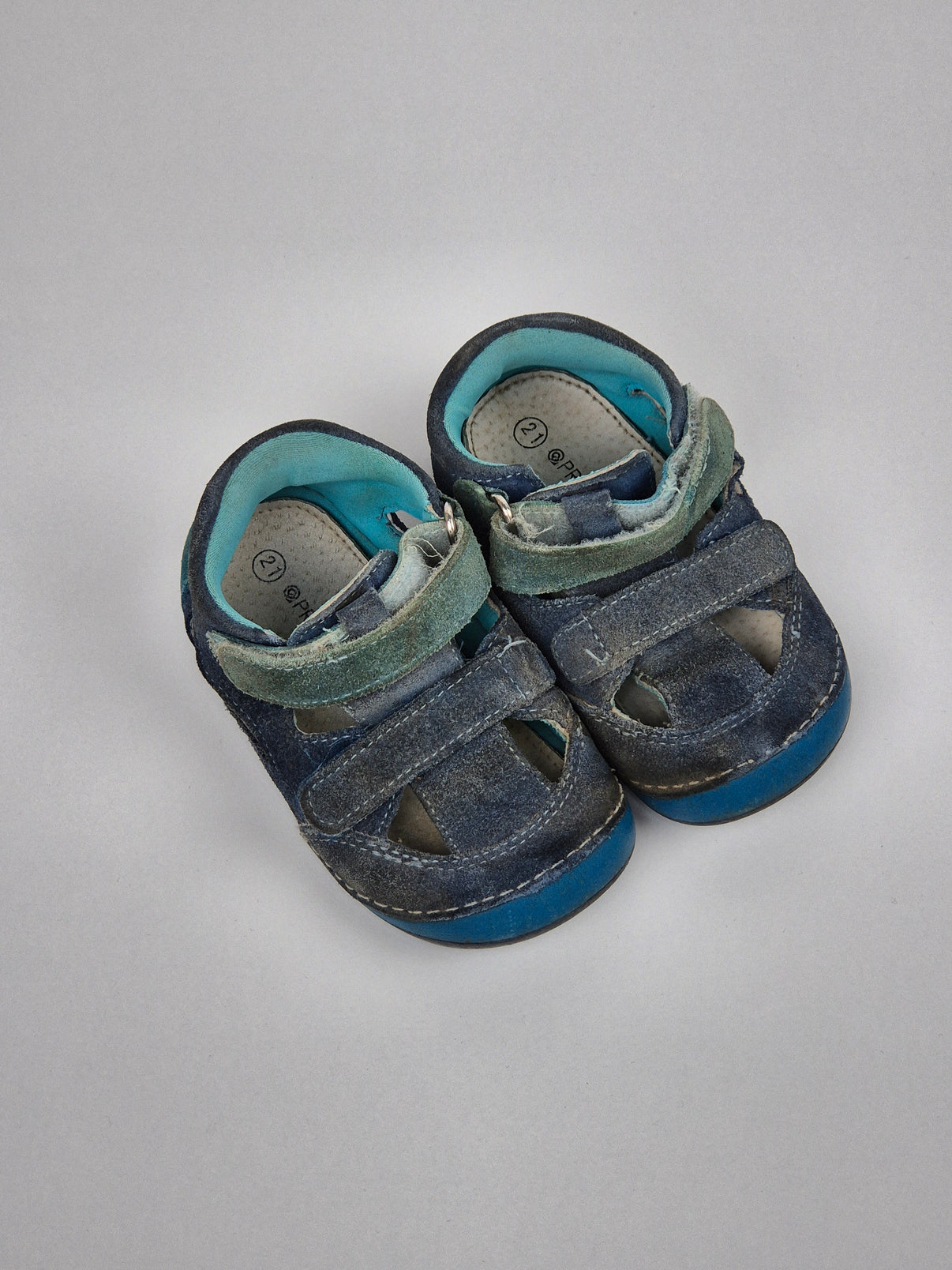 Pohodlné dětské sandálky Protetika ve tmavě modré barvě s modrozelenými detaily a světlou tyrkysovou podšívkou. Kožený svršek a uzavřená špička chrání dětské prstíky, zatímco měkká vnitřní stélka a ohebná podrážka podporují zdravý vývoj chodidla. Praktické zapínání na suchý zip usnadňuje obouvání. Sandálky jsou ideální na letní dny, do města i na ven a hodí se pro kluky.