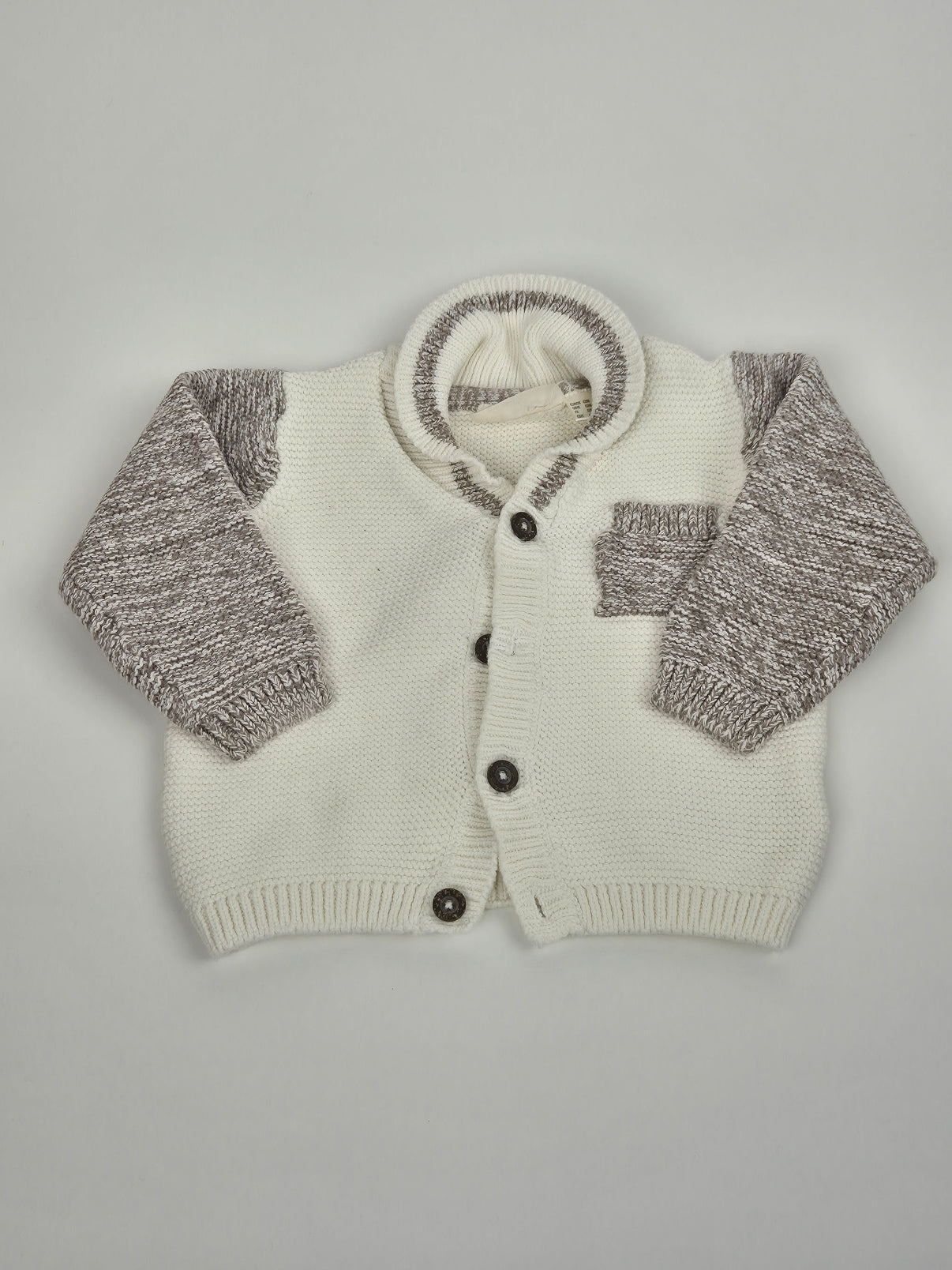 Hřejivý pletený svetr značky Lupilu ve velikosti 62/68 zaujme svým nadčasovým vzhledem. Kombinace krémové barvy s melírovanými hnědo-béžovými rukávy a detaily působí jemně a stylově. Svetr se zapínáním na knoflíky a malou kapsičkou na hrudi se hodí jak na procházky, tak na návštěvy. Ideální pro chlapečka, ale snadno unosí i holčička – univerzální kousek do každého dětského šatníku.