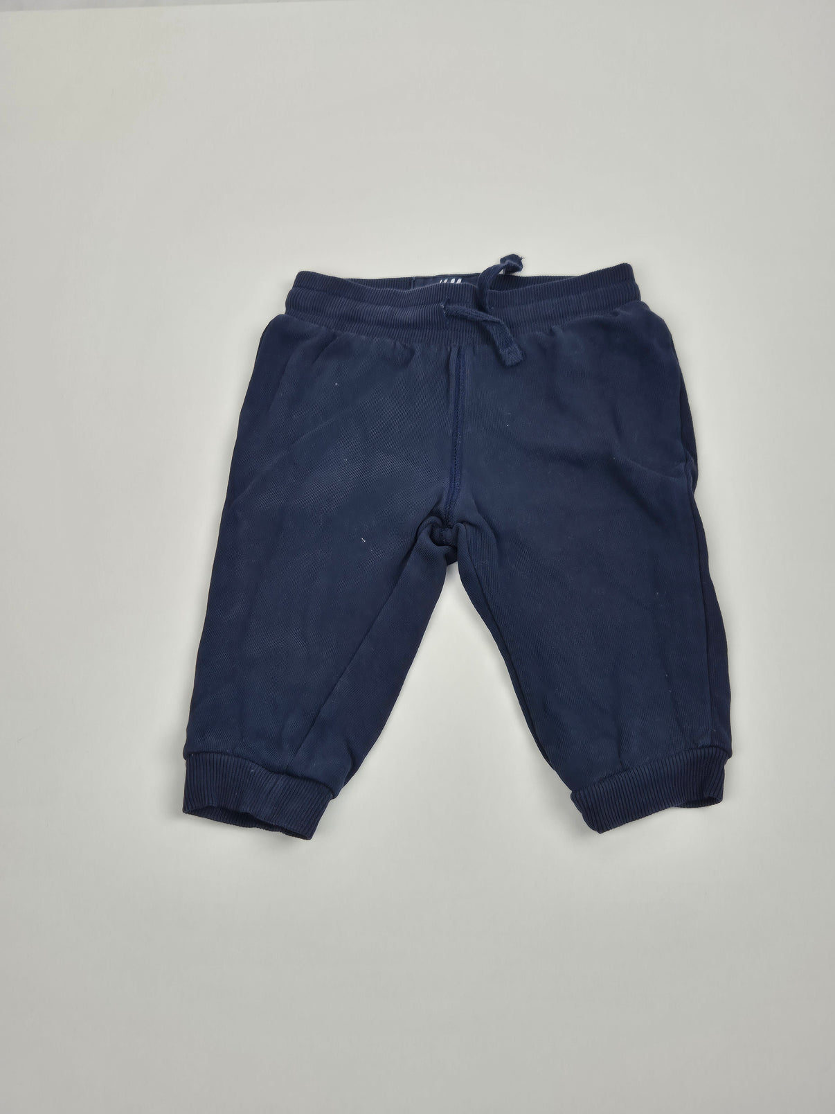 Klasické dětské tepláčky značky H&M ve velikosti 68 v tmavě modré barvě jsou univerzálním kouskem pro každodenní pohodlí. Měkký bavlněný materiál zajišťuje příjemné nošení, zatímco pružný pas se šňůrkou a žebrované lemy na nohavicích dobře drží na místě.