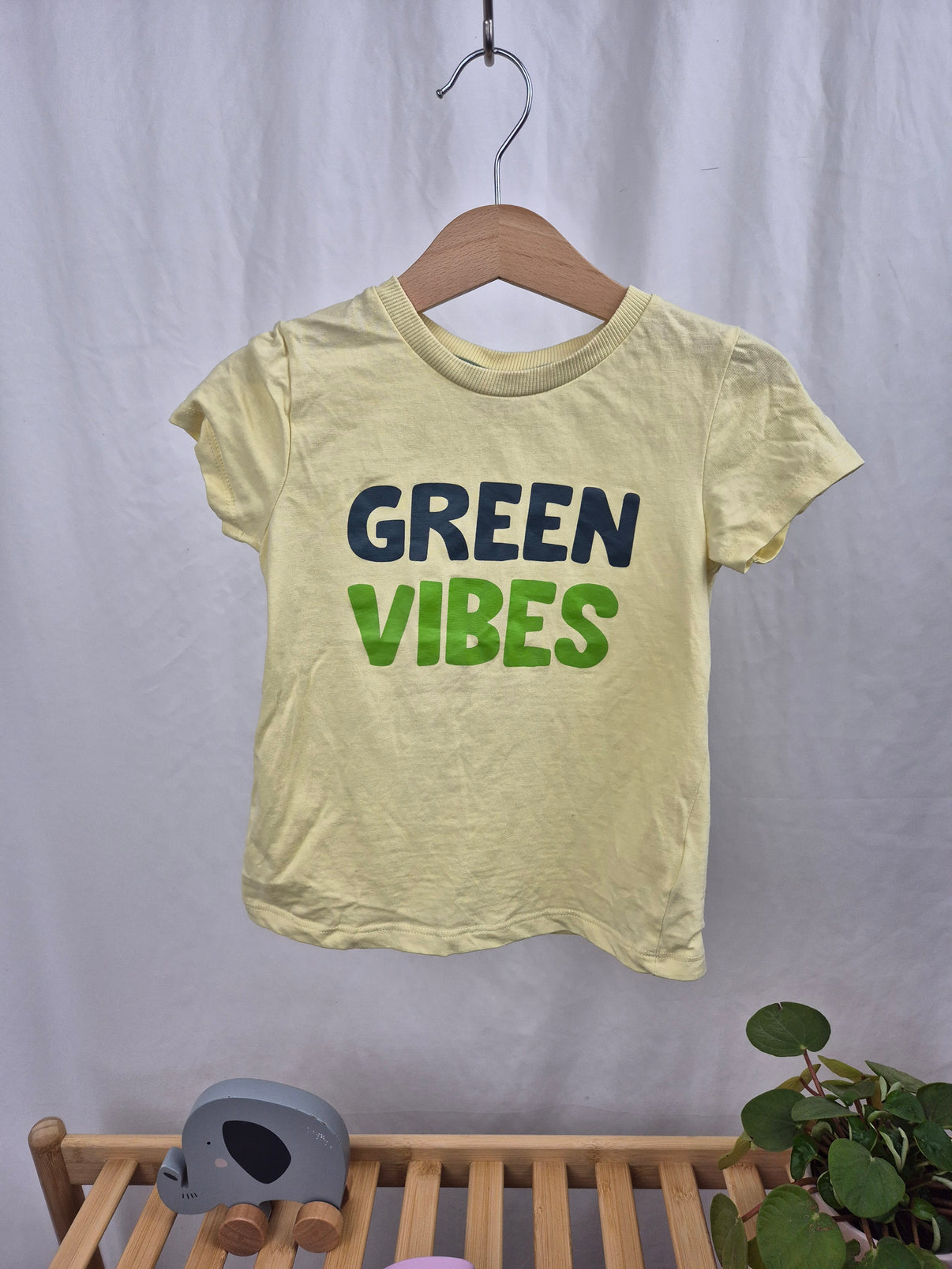 Veselé dětské tričko značky Pepco ve velikosti 98 rozzáří každý den svým světlounce žlutým odstínem a hravým nápisem "GREEN VIBES" v odstínech modré a zelené. Klasický střih s kulatým výstřihem a krátkými rukávy zajišťuje pohodlí při hře i odpočinku. Ideální volba pro kluky i holky, kteří milují barvy, pohyb a pozitivní energii. Skvělé na každodenní nošení doma, do školky i ven.