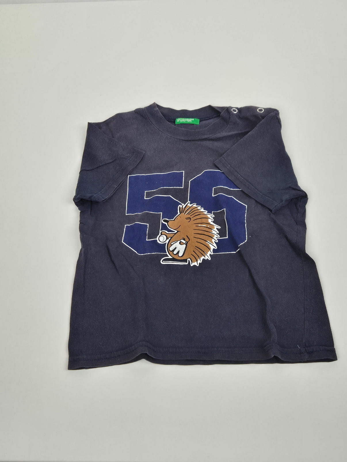 Tmavě modré tričko s krátkým rukávem od značky United Colors of Benetton je ideálním kouskem do šatníku malého sportovce. Na přední straně dominuje potisk čísla 56 a roztomilý ježek s...
