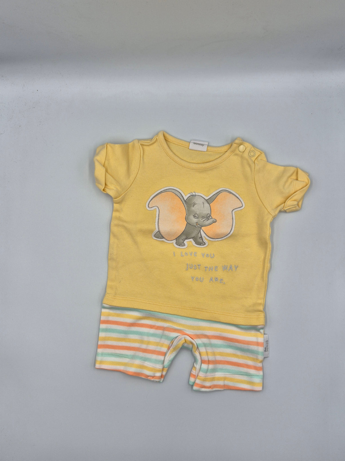 Roztomilý kraťasový overal s motivem Dumba od značky F&F je ideální volbou pro letní měsíce. Vyrobený z měkkého a pohodlného materiálu, který je jemný na citlivou dětskou kůži. Overal s krátkými rukávy a nohavicemi nabízí snadné oblékání a svlékání. Veselý design s oblíbeným sloníkem Dumbem zaujme každé dítě. Velikost 68 je vhodná pro nejmenší děti. Praktický a stylový kousek do každého dětského šatníku.