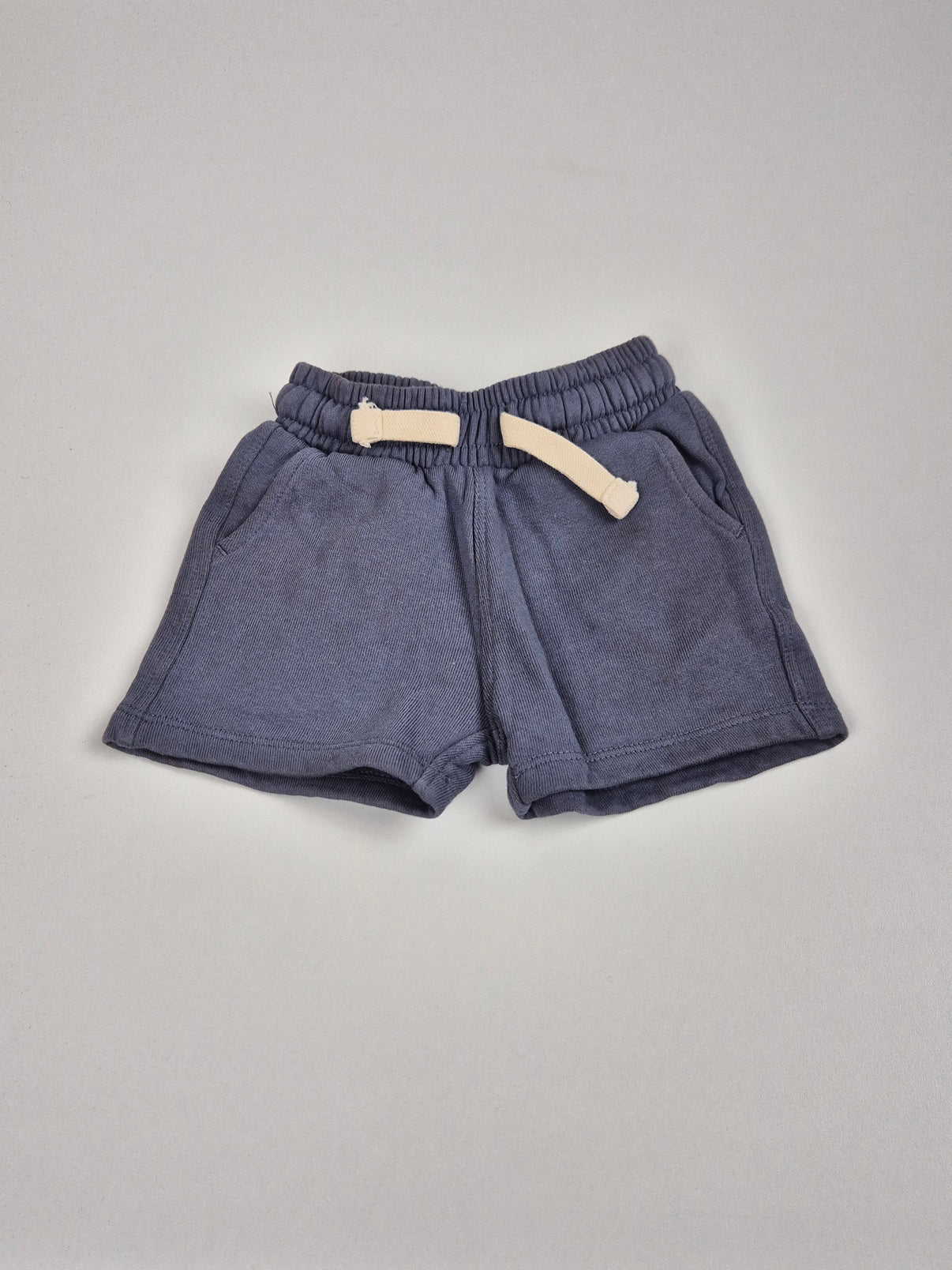 Jednoduché a pohodlné kraťasy značky HEMA ve velikosti 62, vhodné pro kluky. V tmavě šedomodré barvě, s pružným pasem na gumu a bílou šňůrkou na stažení. Kraťasy mají dvě praktické kapsy a volný střih, který zajišťuje pohodlí při pohybu. Perfektní kousek na teplé letní dny doma, na hřiště i na dovolenou.