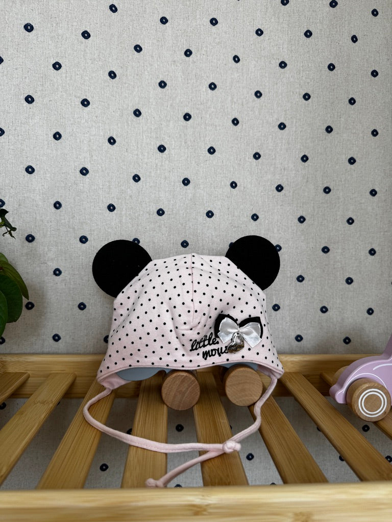 Čepice s oušky a zavazováním Little mouse 74/80