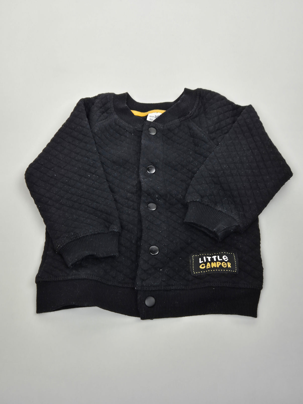 Jednoduchá, ale stylová černá mikina s jemným prošívaným vzorem, která se skvěle hodí na každodenní nošení. Měkký, příjemný materiál zajistí pohodlí při hraní i odpočinku. Zapínání na druky po celé délce usnadňuje oblékání a malé nášivka Little Camper dodává mikině nenápadný, ale hezký detail. Díky neutrální barvě a střihu je vhodná jak pro holčičku, tak pro chlapečka. Ideální kousek do školky, na procházky i do kočárku.