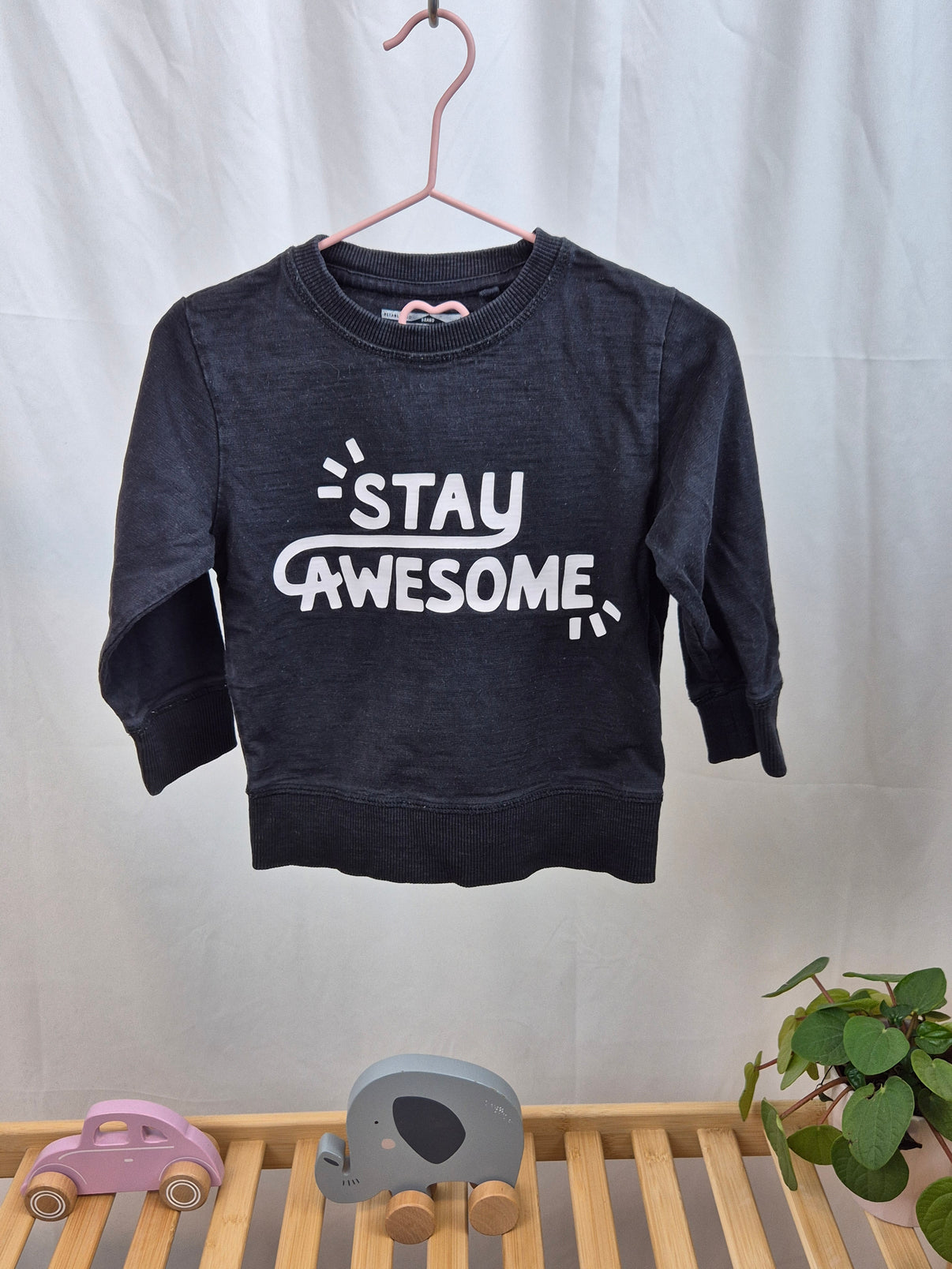 Stylová černá mikina značky Next s výrazným bílým nápisem "Stay Awesome" na přední straně. Pohodlný střih s žebrovanými lemy na rukávech a spodním okraji zajistí skvělé padnutí. Měkký a příjemný materiál poskytne maximální komfort při nošení. Skvělý kousek na každodenní nošení do školky, na hřiště i volný čas! 🖤✨