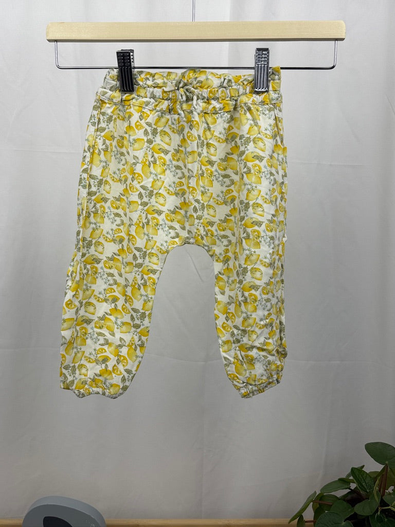Lehké letní kalhoty značky Next ve velikosti 80 jsou ideální volbou pro teplé dny. Bílý základ s veselým citronovým vzorem v odstínech žluté a zelené působí svěže a letně. Kalhoty...