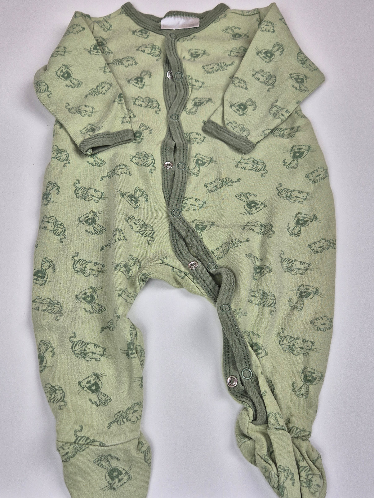 Měkoučké dupačky Ergee v jemné šalvějově zelené barvě, zdobené roztomilým potiskem zvířátek v tónu do zelena. Zapínání na cvočky po celé délce usnadní oblékání i přebalování, integrované ťapky udrží nožičky v teple. Příjemný bavlněný materiál je ideální na spaní, domácí pohodu i první objevování světa. Neutrální provedení padne skvěle holčičkám i klukům.