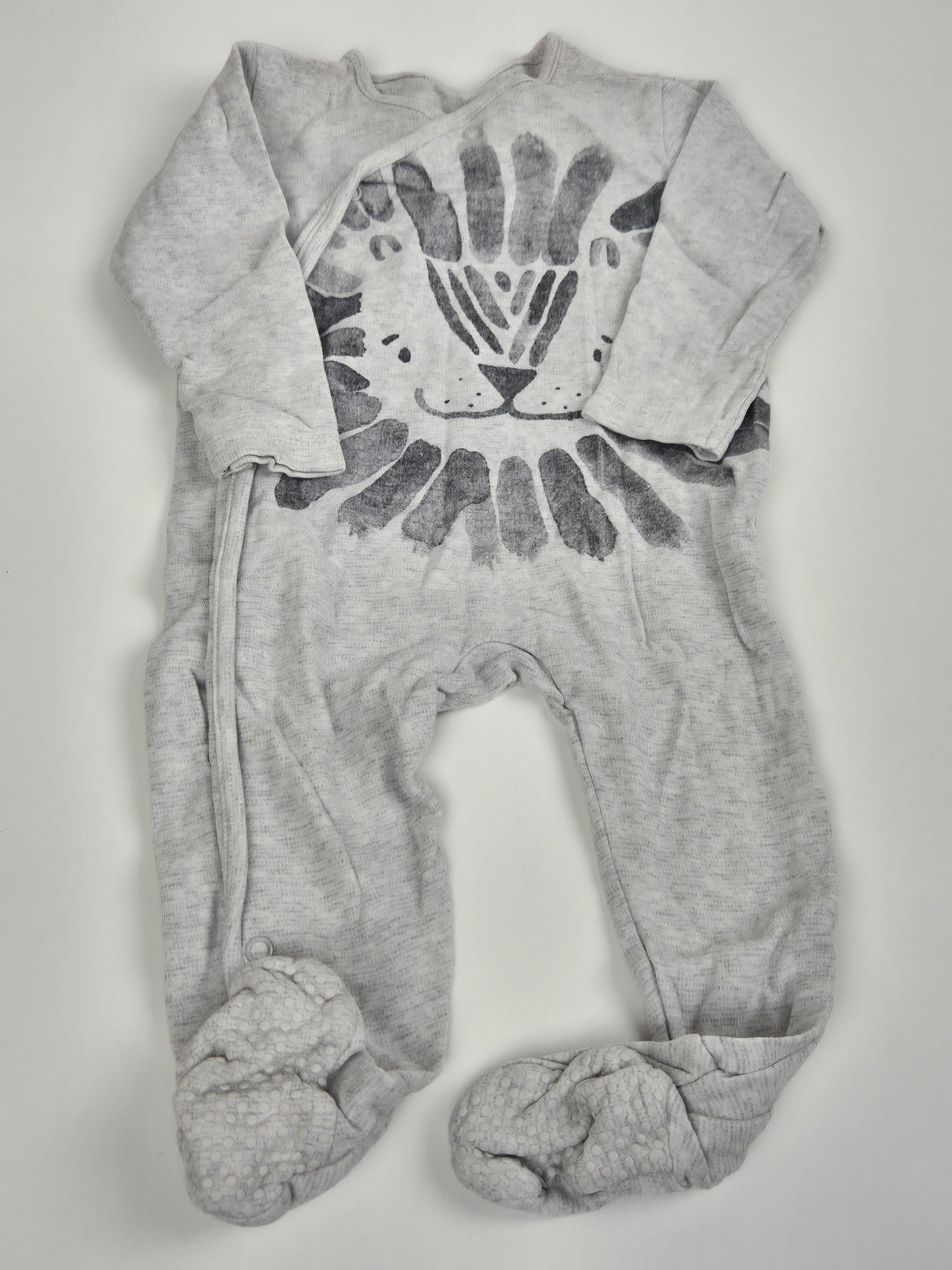 Šedé dupačky George s dlouhým rukávem a roztomilým potiskem lvíčka na přední straně. Praktické zapínání na patentky po celé délce usnadní oblékání i přebalování. Vyrobené z příjemné bavlny, ideální na spaní i pohodlné nošení doma. Velikost 80, vhodné pro holčičky i chlapečky.